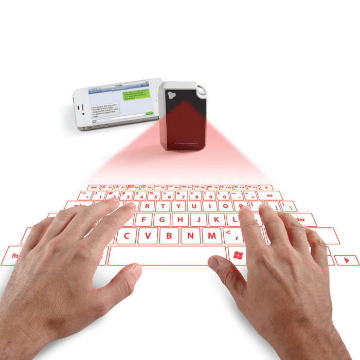 When I first heard about this technology I thought it was magic. Simply put, the advanced optics track your fingers so when you type on the virtual keyboard, it is registering through a Bluetooth wireless transmitter. The keyboard works with a smartphone, tablet and even a laptop.