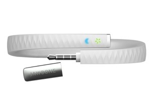 To sync the device to the Jawbone app, lift off the cap at one end of the band which reveals a mini-jack that plugs into the headset jack of your mobile device. Then open the app, tap a sync icon and wait a few seconds for the process to be completed.