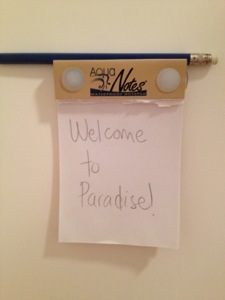 My daughter Whitney and her boyfriend Fredrick wanted to make sure Eliot and I knew exactly where we were this morning, so they left this note in the shower. My heart fluttered. The Florida Keys has this influence on you.