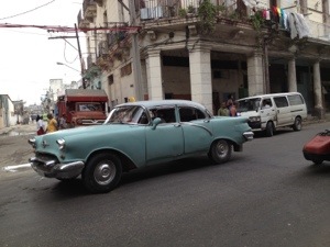 The Chevy that the “I Love Lucy” show made so famous in the ’50s is one of an estimated 60,000 pre-1960 American cars now in use in Cuba. Other than some newer models infiltrating from Europe and South America, Cuba looks like a movie set with 50-year-old Chryslers, Plymouths, and Chevys lining the streets. Most of them have been repaired with Asian parts. Don’t look too closely. They are being held together in creative makeshift ways.