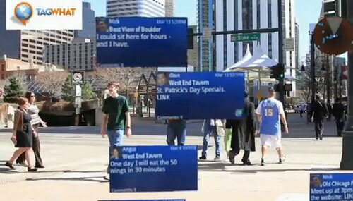 Most of the information is being mined from social networks where business and events are always recorded. I was also told that I could point my iPhone with an open Tagwhat app at a retail store and I would pull information about it from the Web, Facebook, Twitter, or Foursquare.