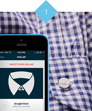 2-Then you will select the collar you want. with a wide spread, straight point, regular button down, and a softer casual button down.