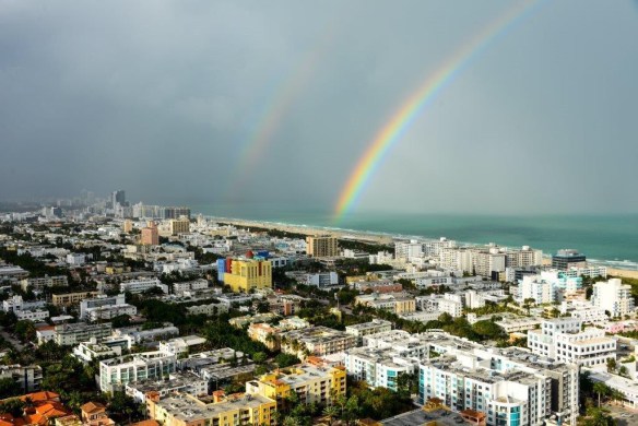 A double rainbow appeared over Miami Beach last night just about dinner time. It was quite spectacular.