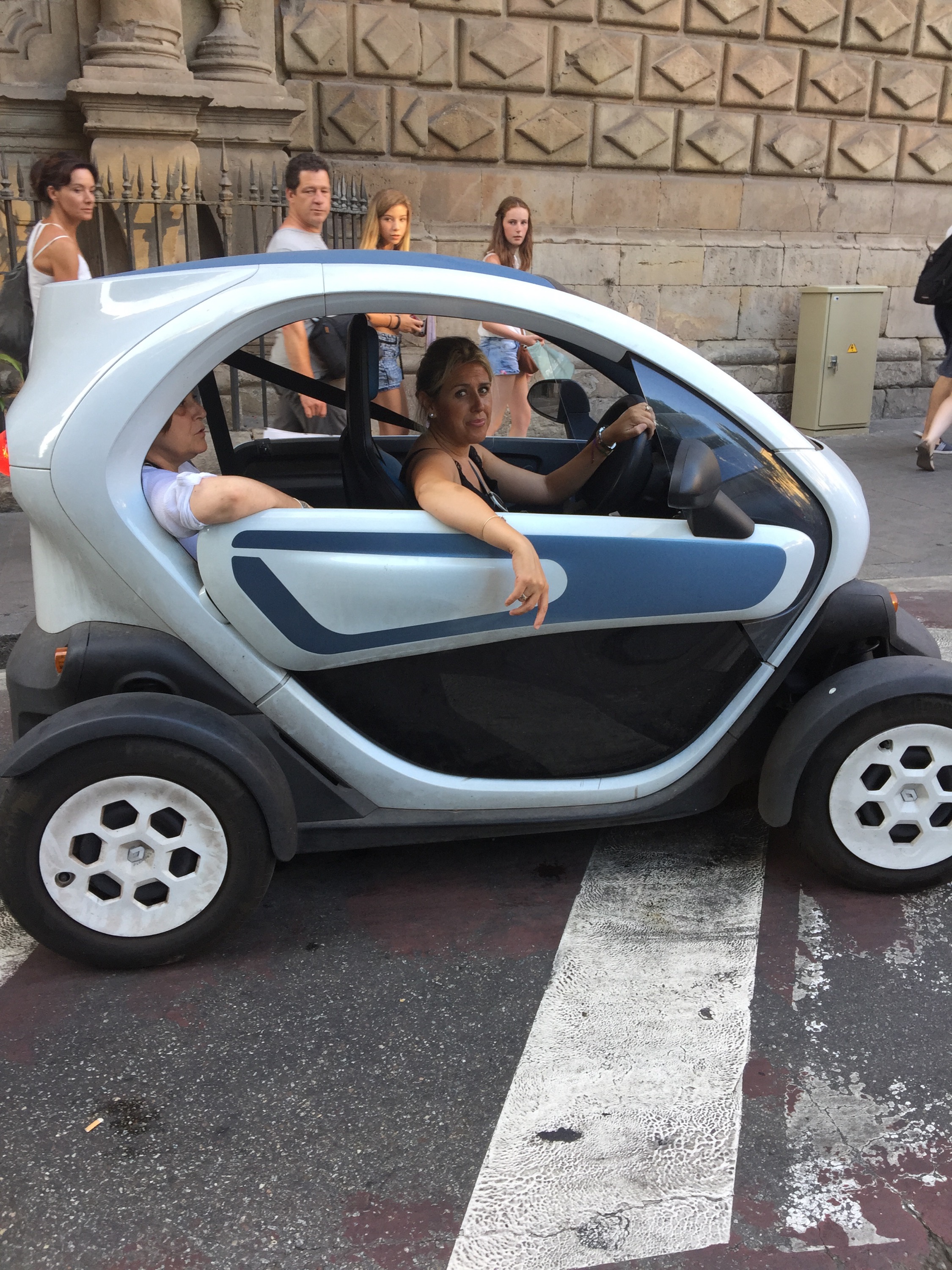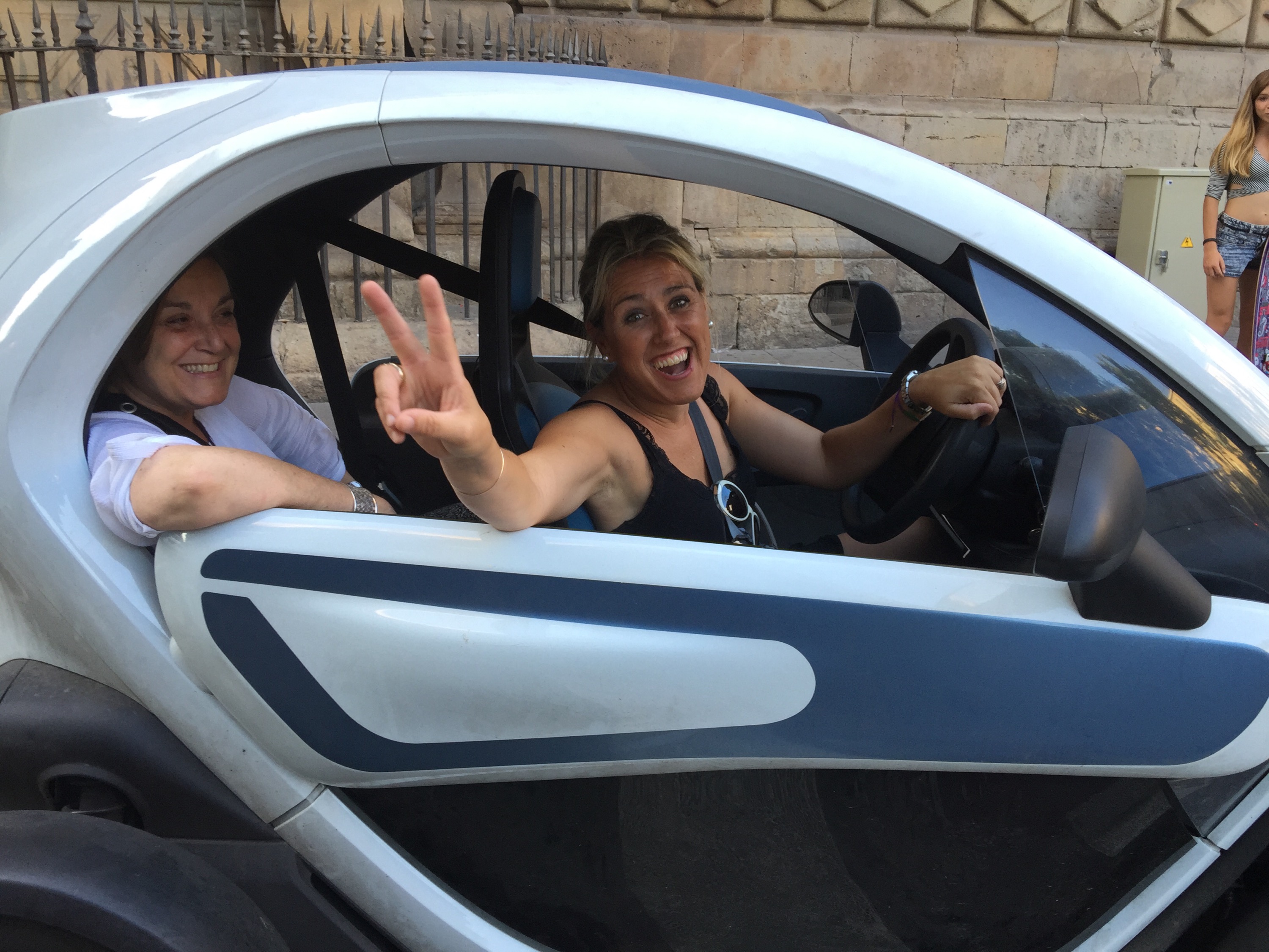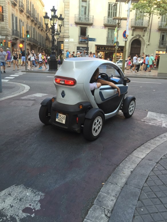 We were only in Barcelona for a few hours, when we spotted the Renault Twizy, a battery-powered two-passenger electric car designed and marketed by Renault and manufactured entirely in Valladolid, Spain. It’s becoming popular here.