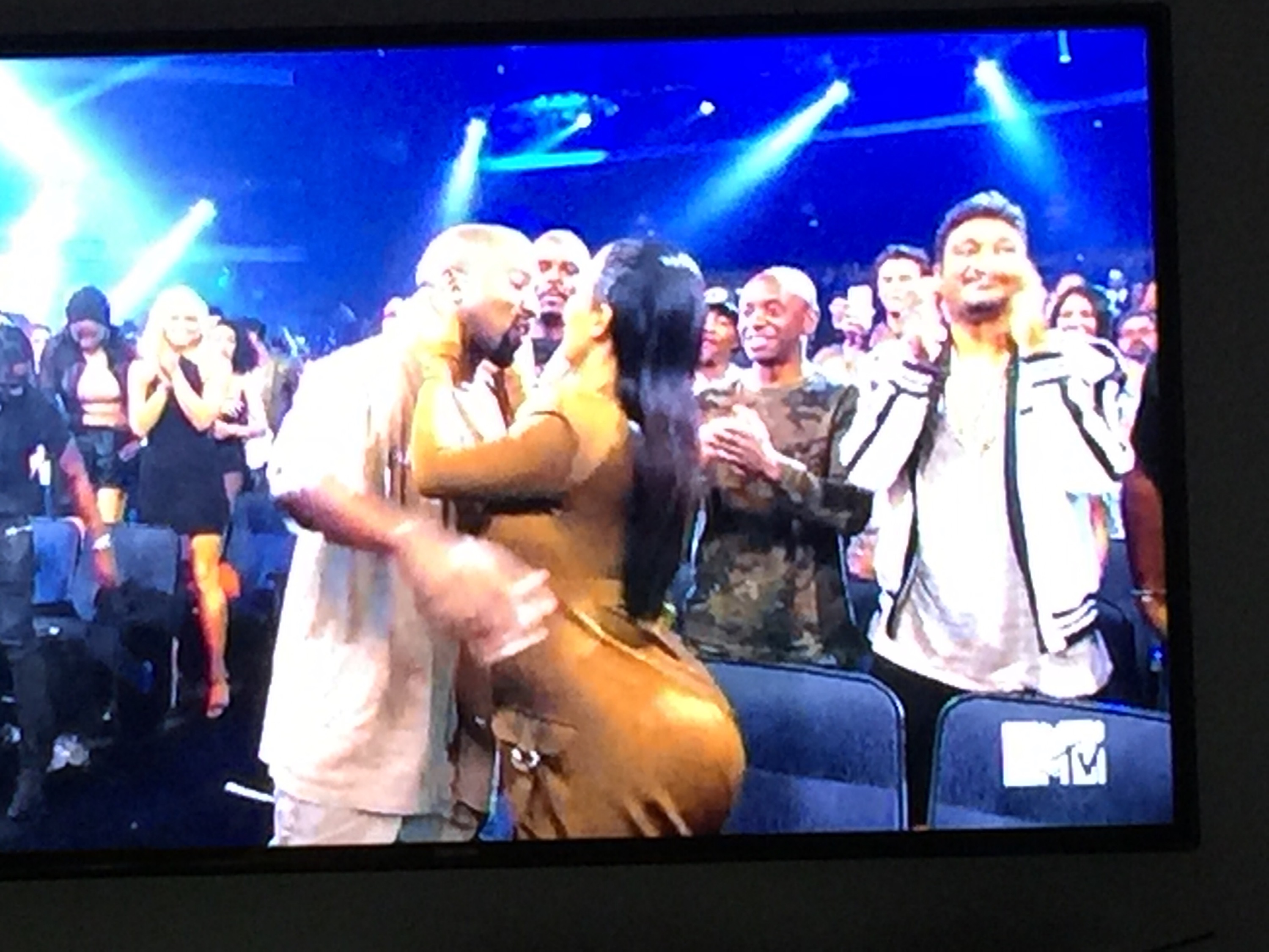 Then Kayne West with his very pregnant wife, Kim Kardashian, took center stage.