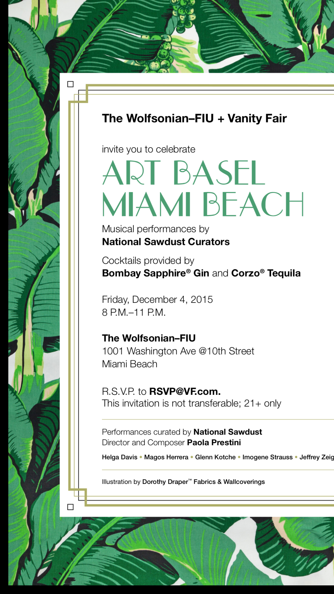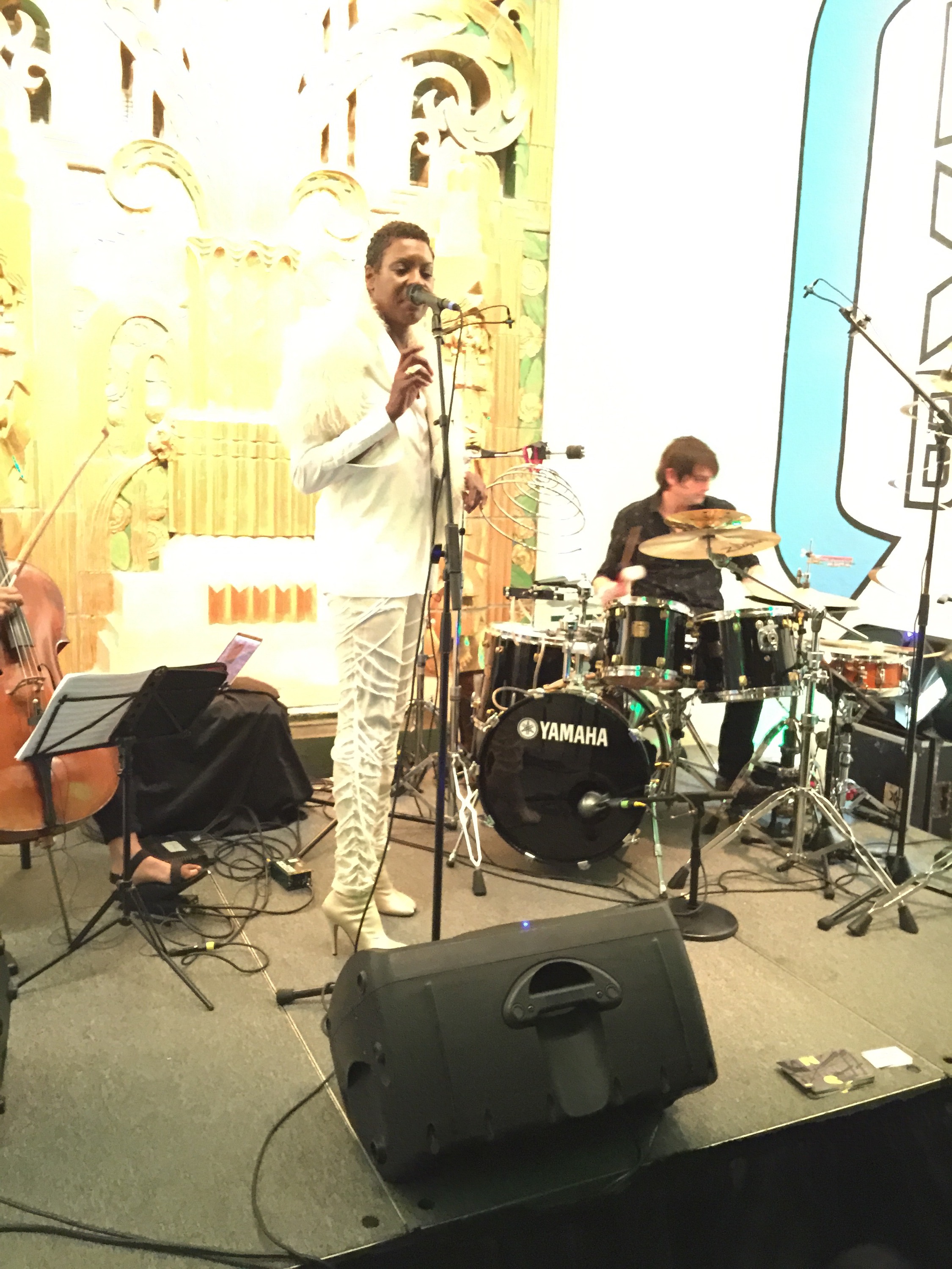 A few weeks ago Kevin told me that a few of the artists from The National Sawdust were performing at an Art Basel party at the Wolfsonian Museum sponsored by Vanity Fair magazine. The list included: Glenn Kotche, formerly with the band Wilco; Jeffrey Zeigler, formerly with the Kronos Quartet; Magos Herrera, a Latin jazz artist and Helga Davis, singer who toured last year on the Philip Glass’s Einstein on the Beach.