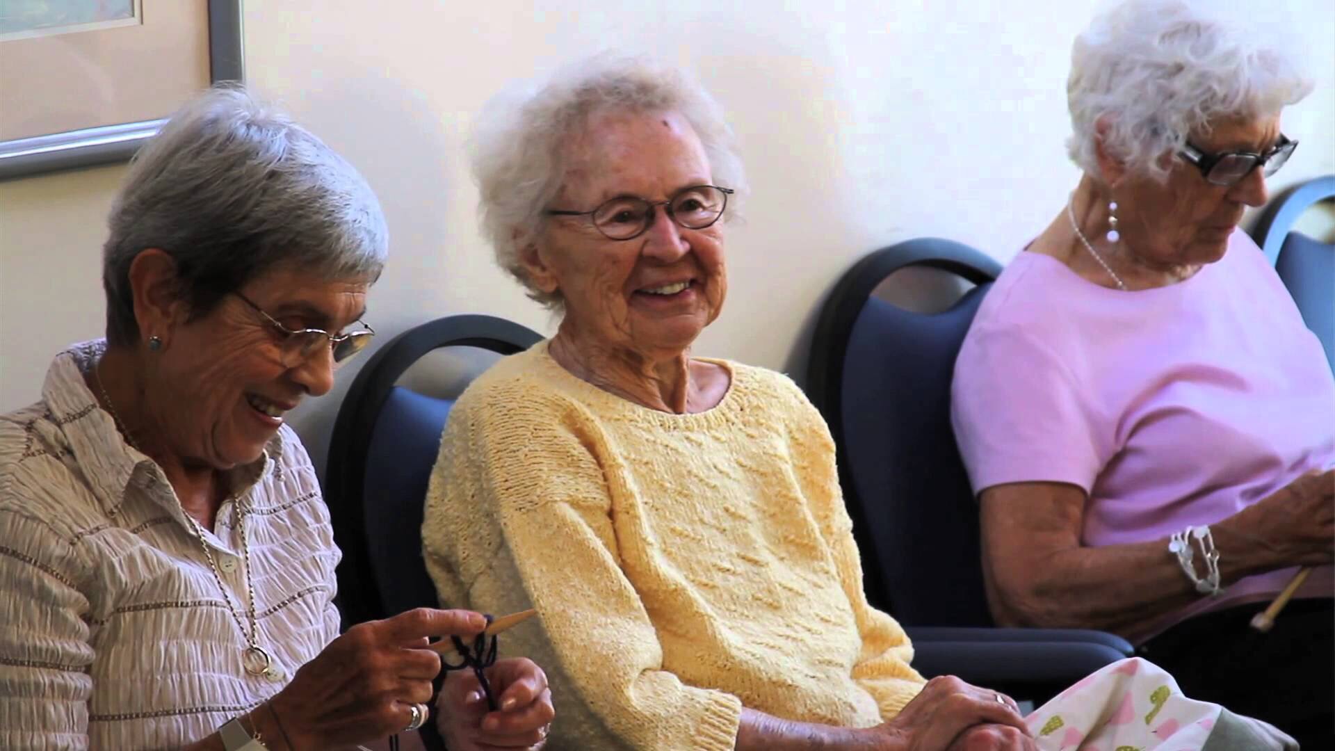 The Purlettes hand knit every one of the bags, even 98 year-old Kay. The seniors average three handbags a week. Some say they have never been happier in their lives.
