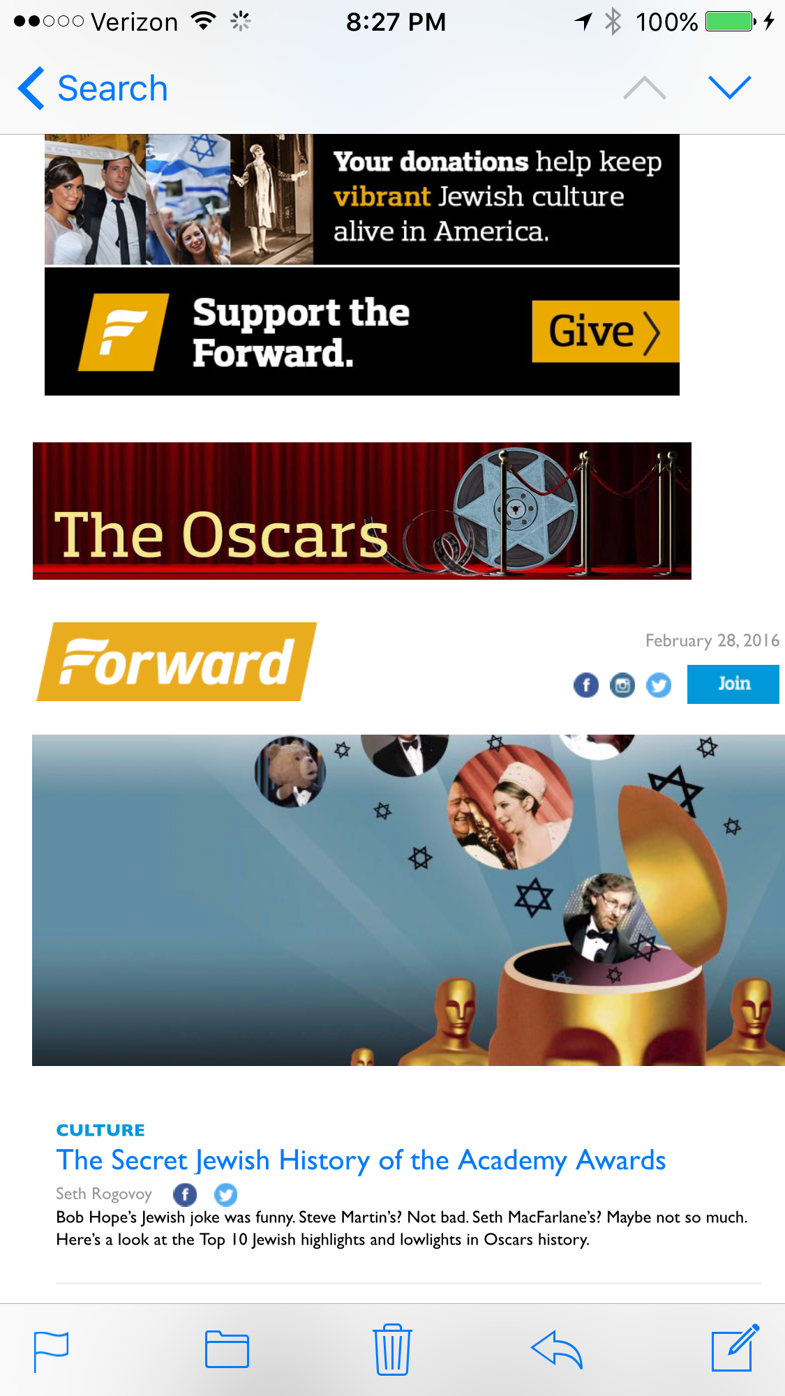 To tell you the truth, I never thought I would be reading The Forward. The current day editors got very smart. They write edgy news and then distribute it in a modern day, delivery package.