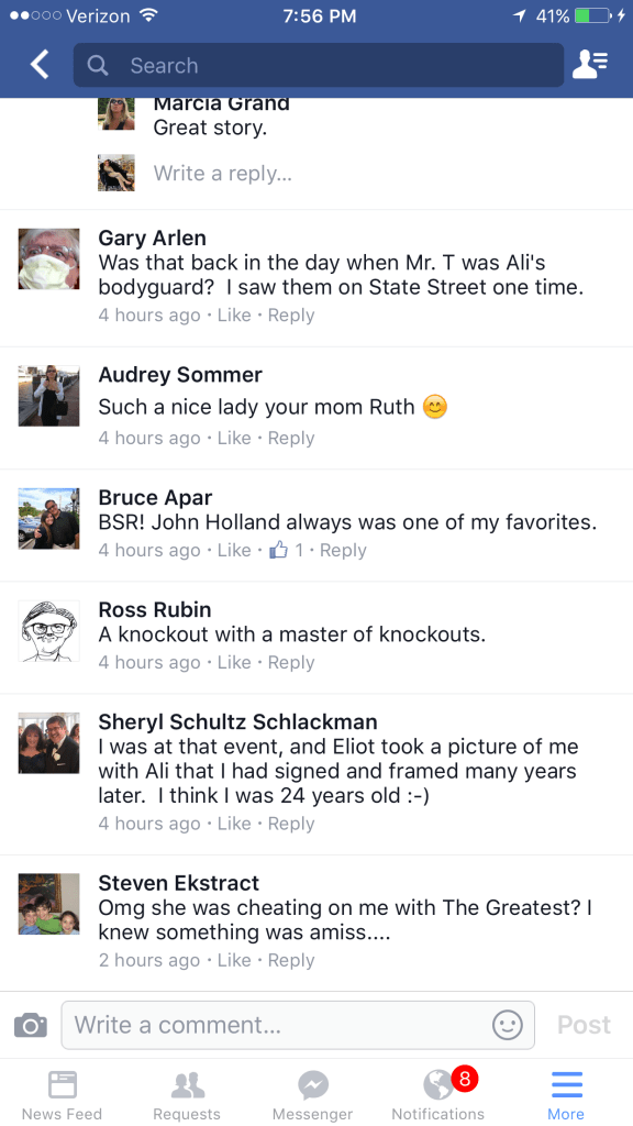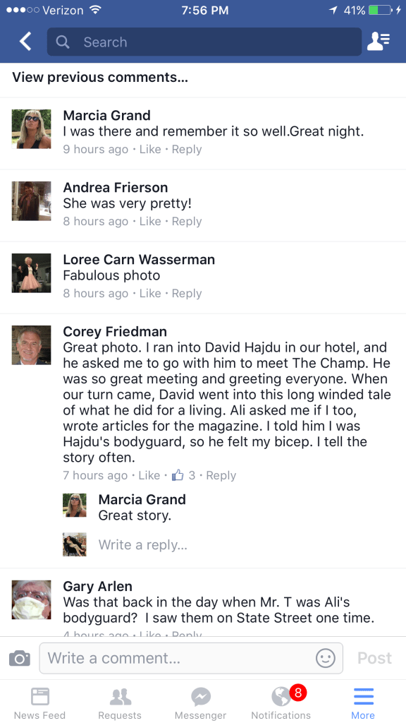 Every Thursday is throw back Thursday on Facebook, #TBT. I posted a picture of my mother with Muhammad Ali this week. It received over “90 Likes ” and some wonderful comments.
