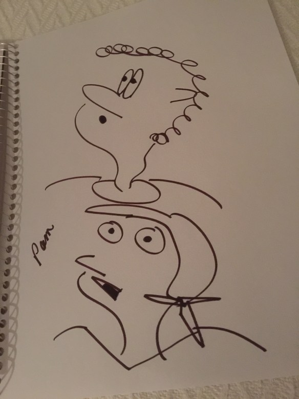 “I’m not saying you are all going to draw like Michelangelo, but I bet by the end of the session you could draw pictures.There are only two things you need to do to be able to achieve this. One is have an open mind and two, just be prepared to have a go. So grab a pen and a piece of paper.”