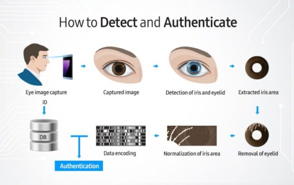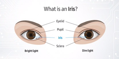 Samsung explains that iris scanning is “an automated method of biometric identification that uses mathematical pattern recognition of images of an individual’s iris, either from one or both eyes.