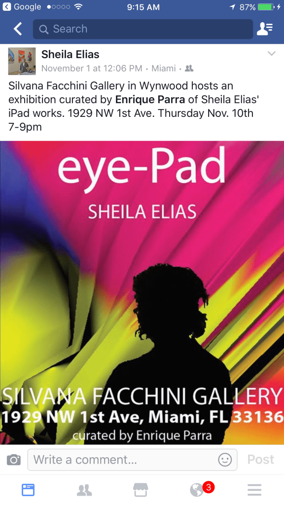 It’s amazing how the iPad has entered the serious world of art creation and collecting. Sheila Elias, a multi-talented artist whose work has been shown around the world, is a leading force in iPad art creations. I’ve written about Sheila before. Click here.