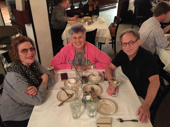Marsha Levine, (C) dining with us at last night at Joe’s Stone Crab, Miami Beach, Fl. We sat at our favorite table, served by our favorite waiter, and indulged in our favorite Joe’s meal of stone crabs.