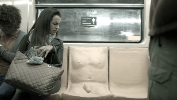 UN Women, a very powerful women’s group, came up with the idea of putting a molded penis on a seat on a train in Mexico City as a way to remind passengers of the sexual violence women suffer everyday in that city. Passenger reactions were taped.