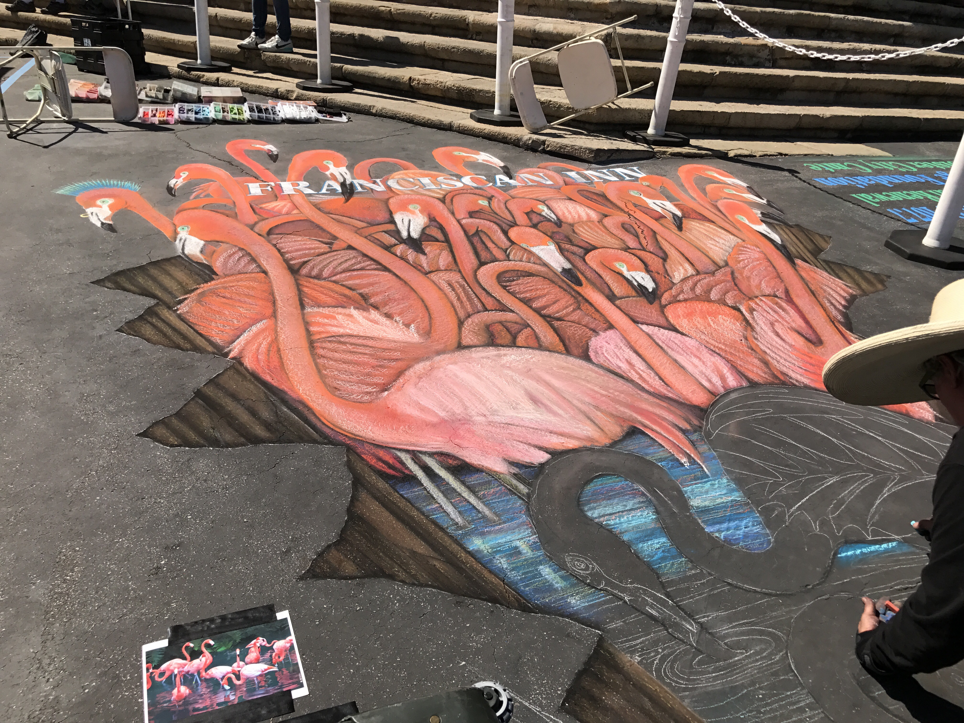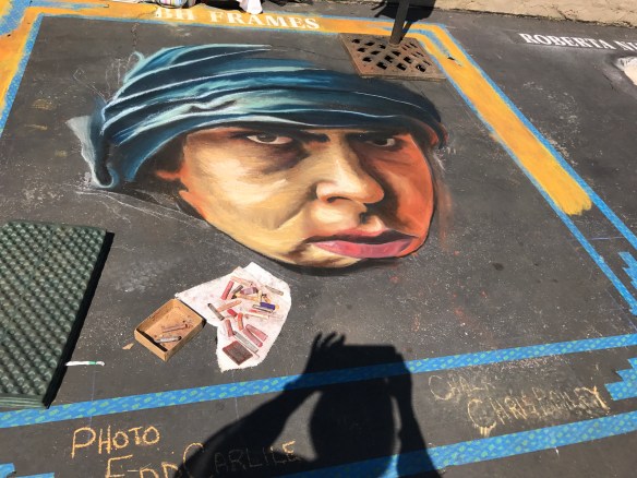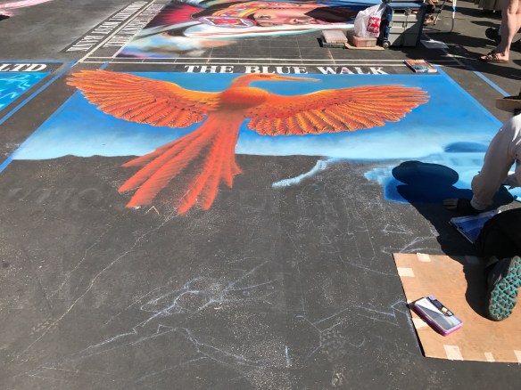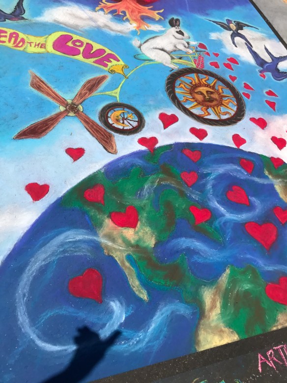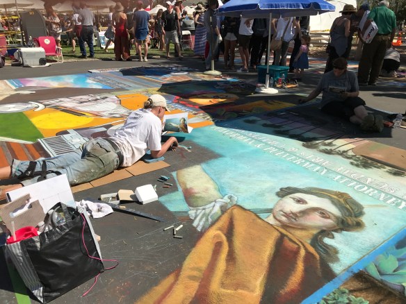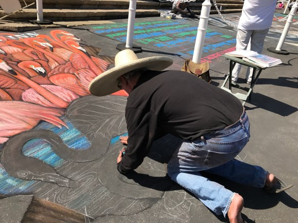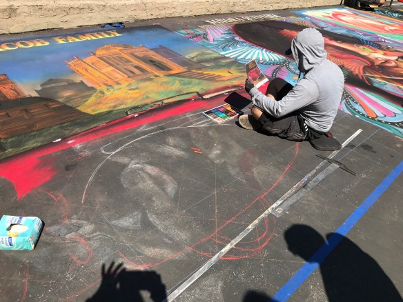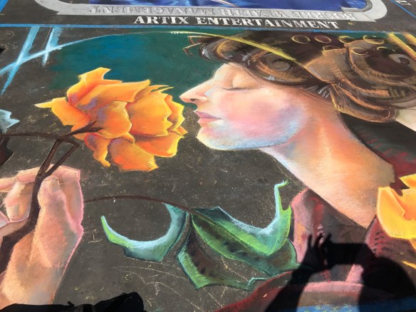 We had a great time walking around, viewing the squares, watching pieces being created, and meeting some of the artists. It’s amazing what can be done with chalk. Thank goodness for the great weather. I hate the thought of rain washing away these masterpieces. I feel privileged that I could at least take photos of some of the drawings.