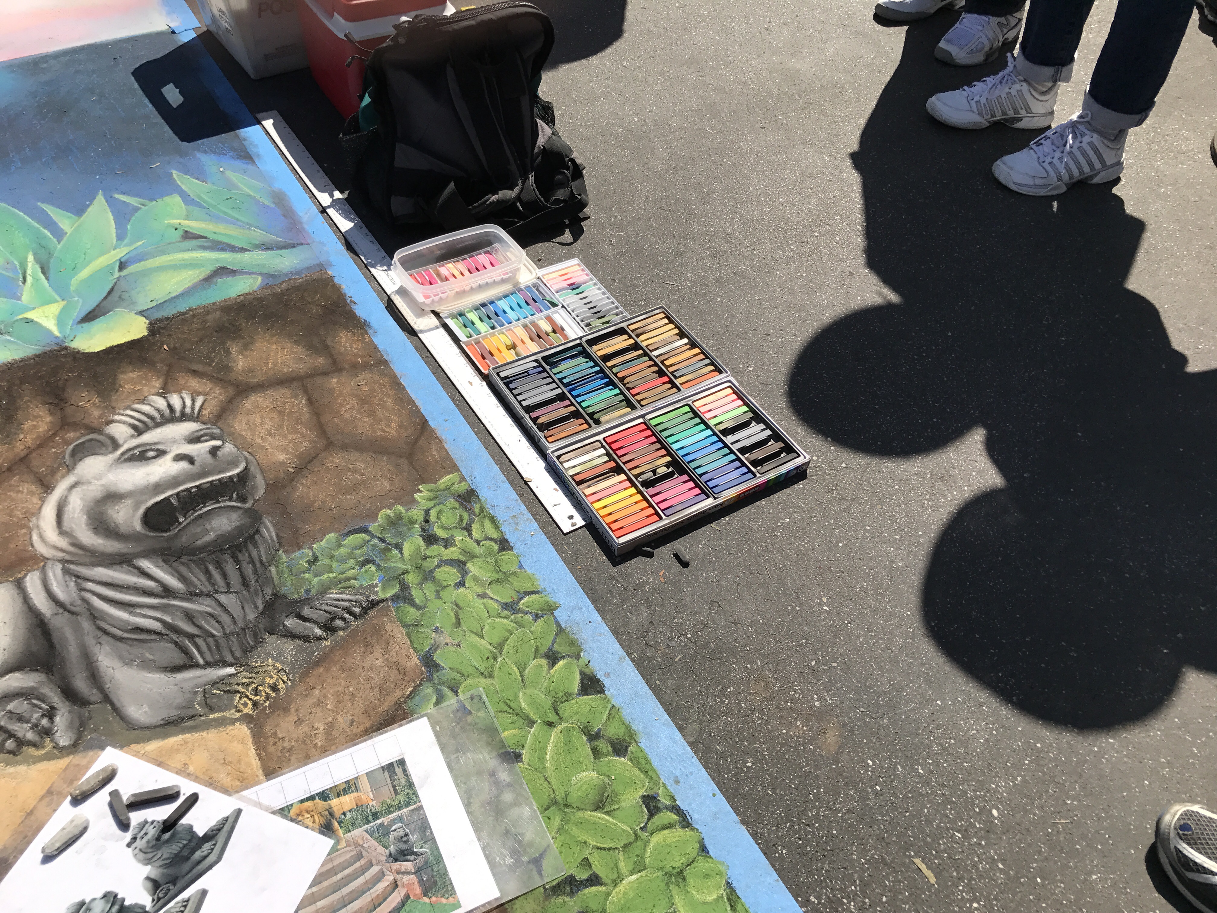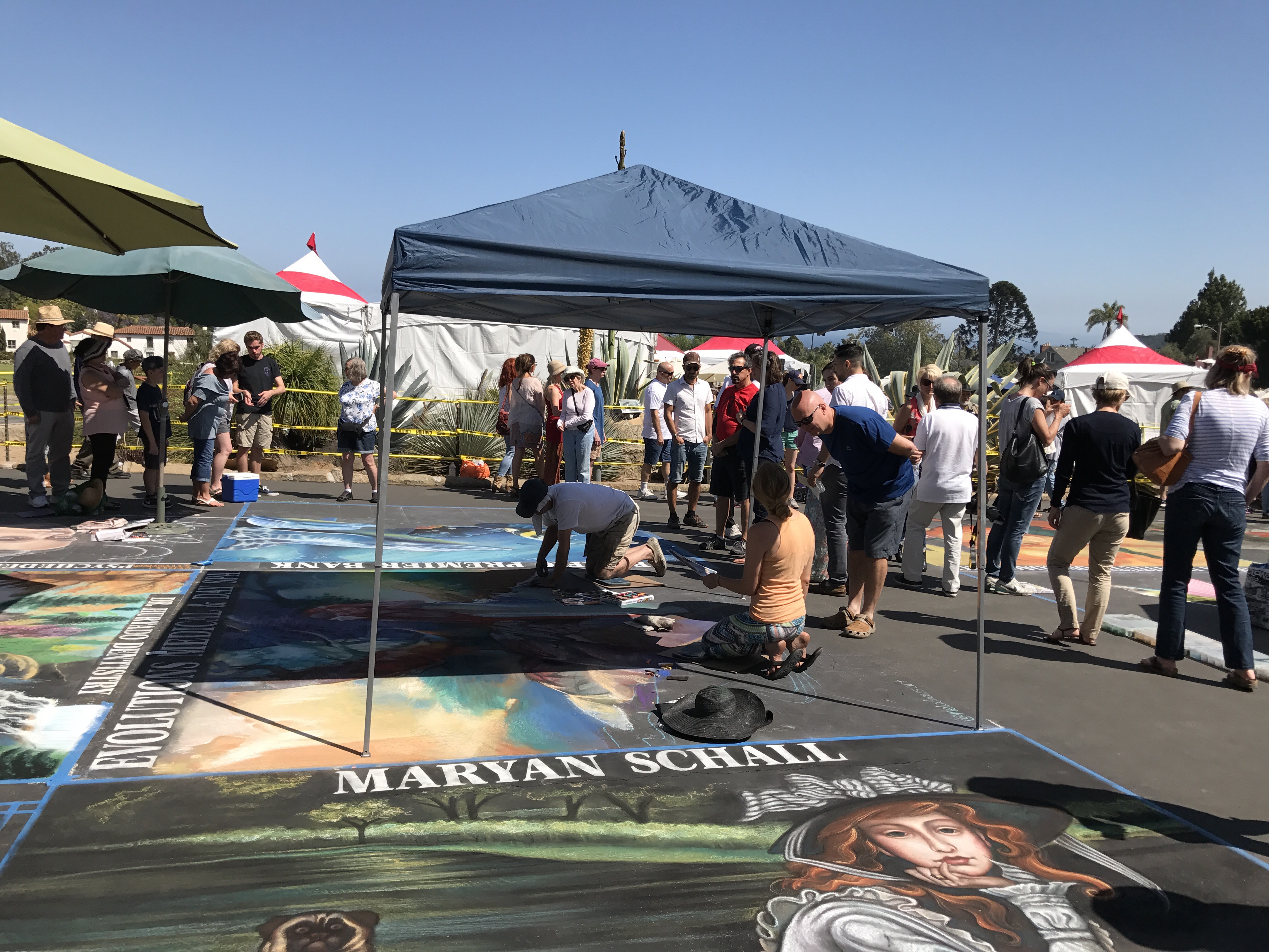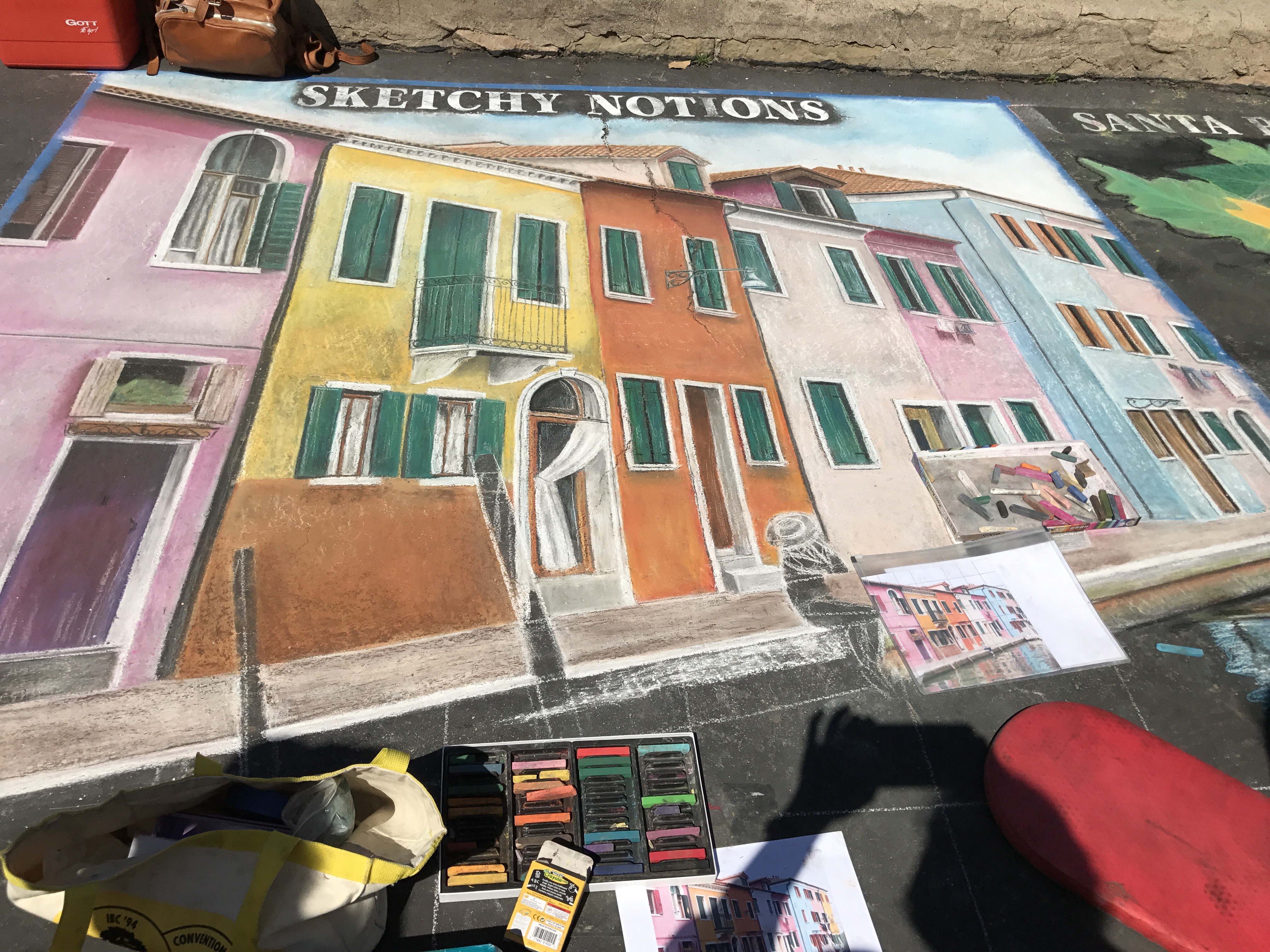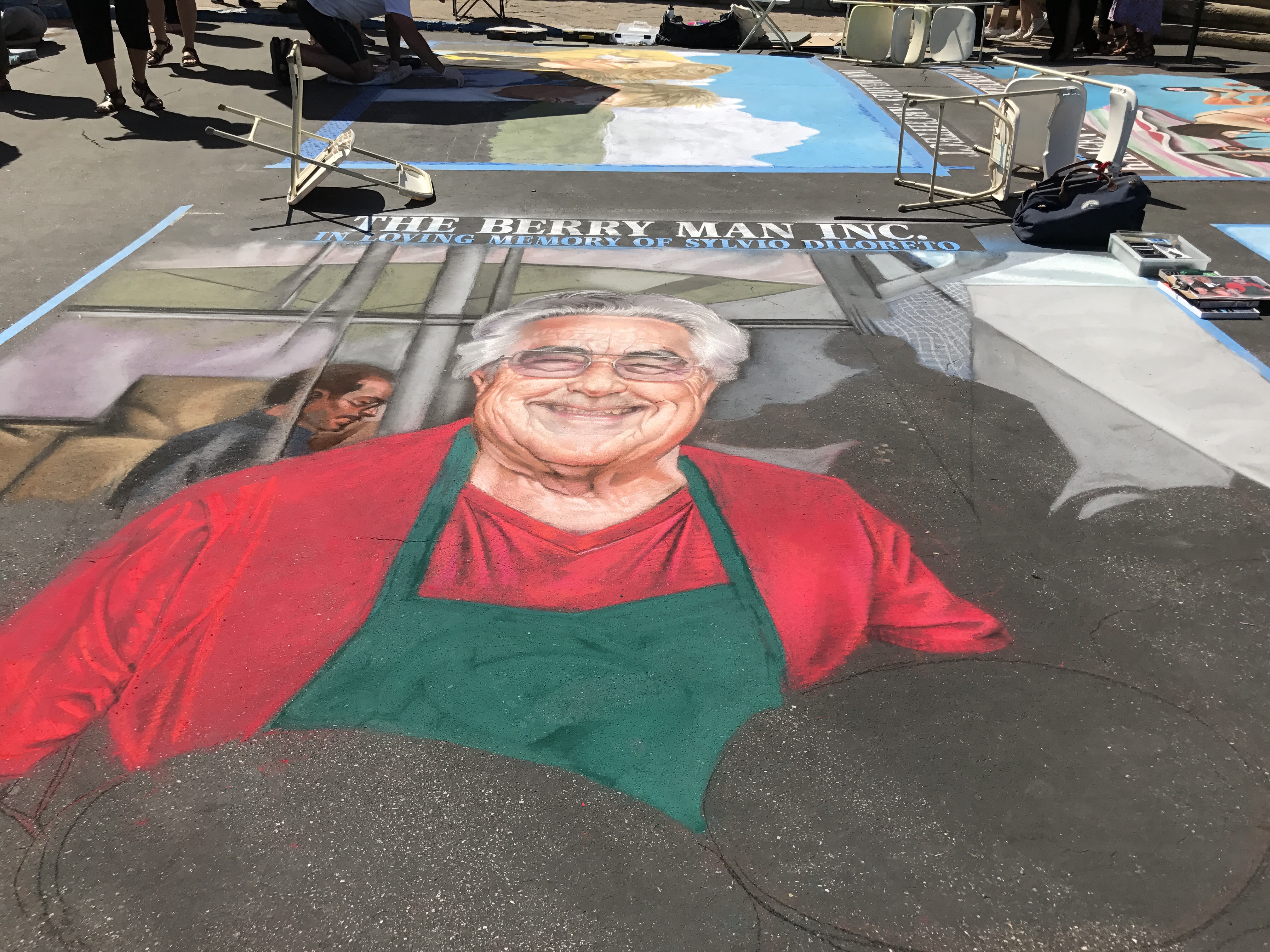 Called I Madonnari, the festival was the first of its kind in North America. This was the 31st anniversary. The squares range in size from 4-by-6 feet to 12-by-12 feet. Each one bears the name of the sponsor — a business, organization, family, or individual.