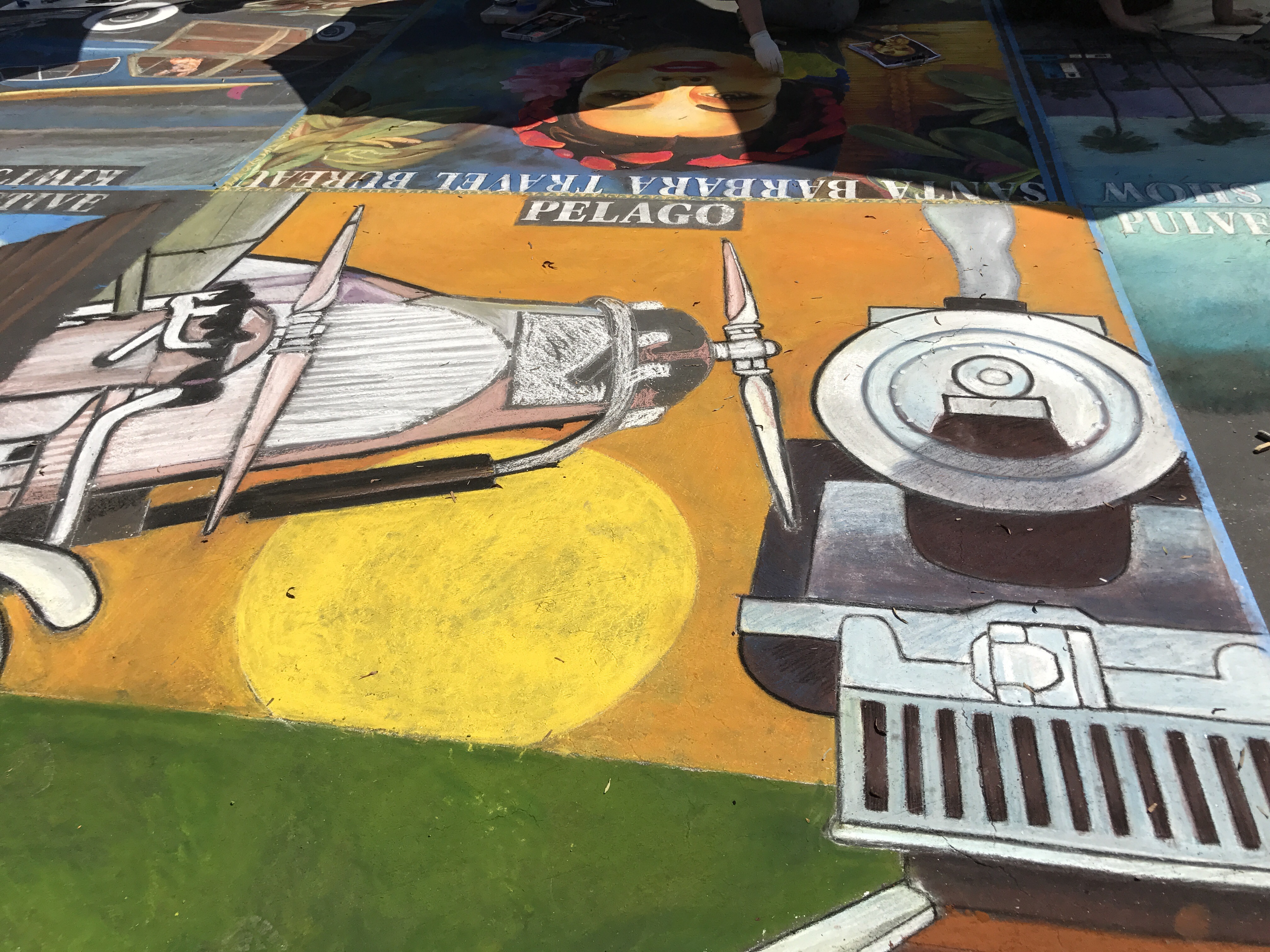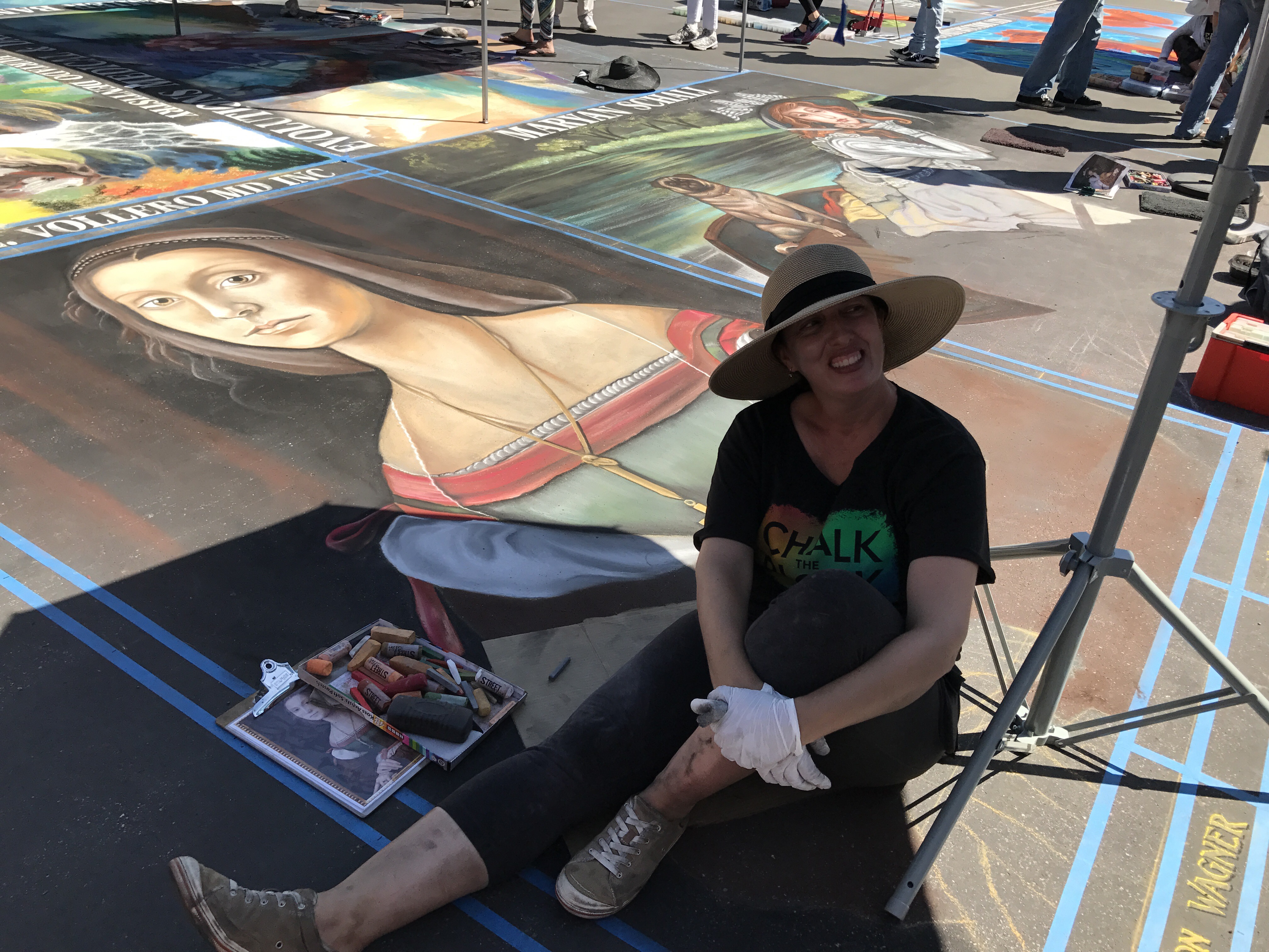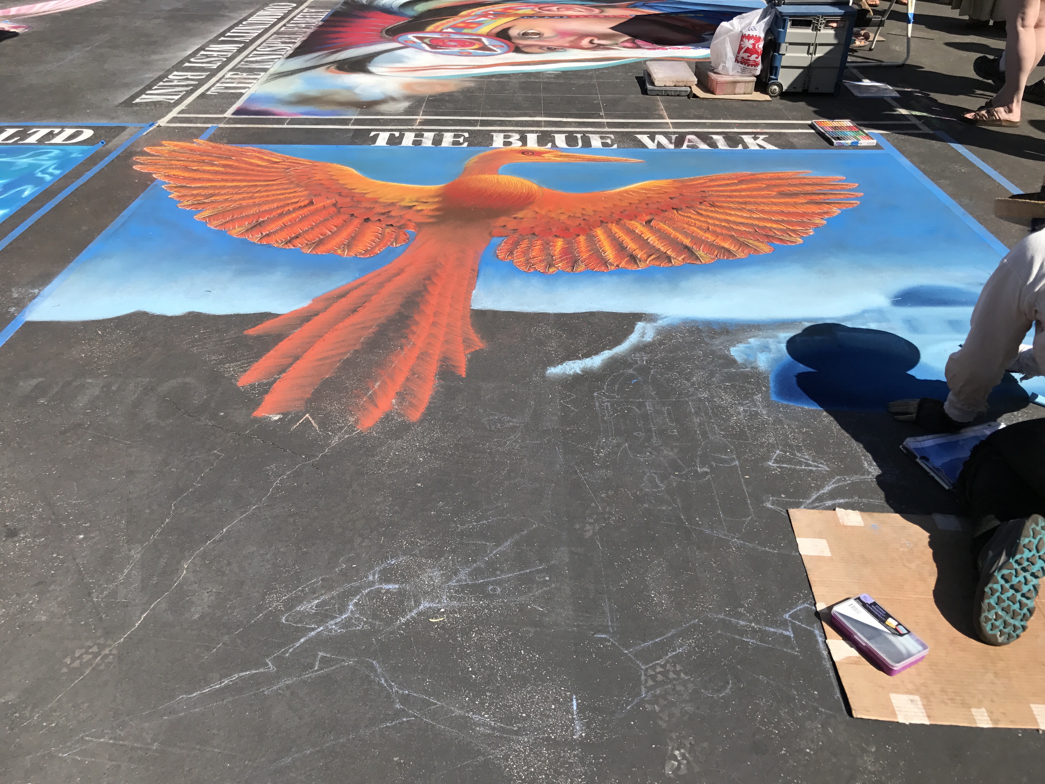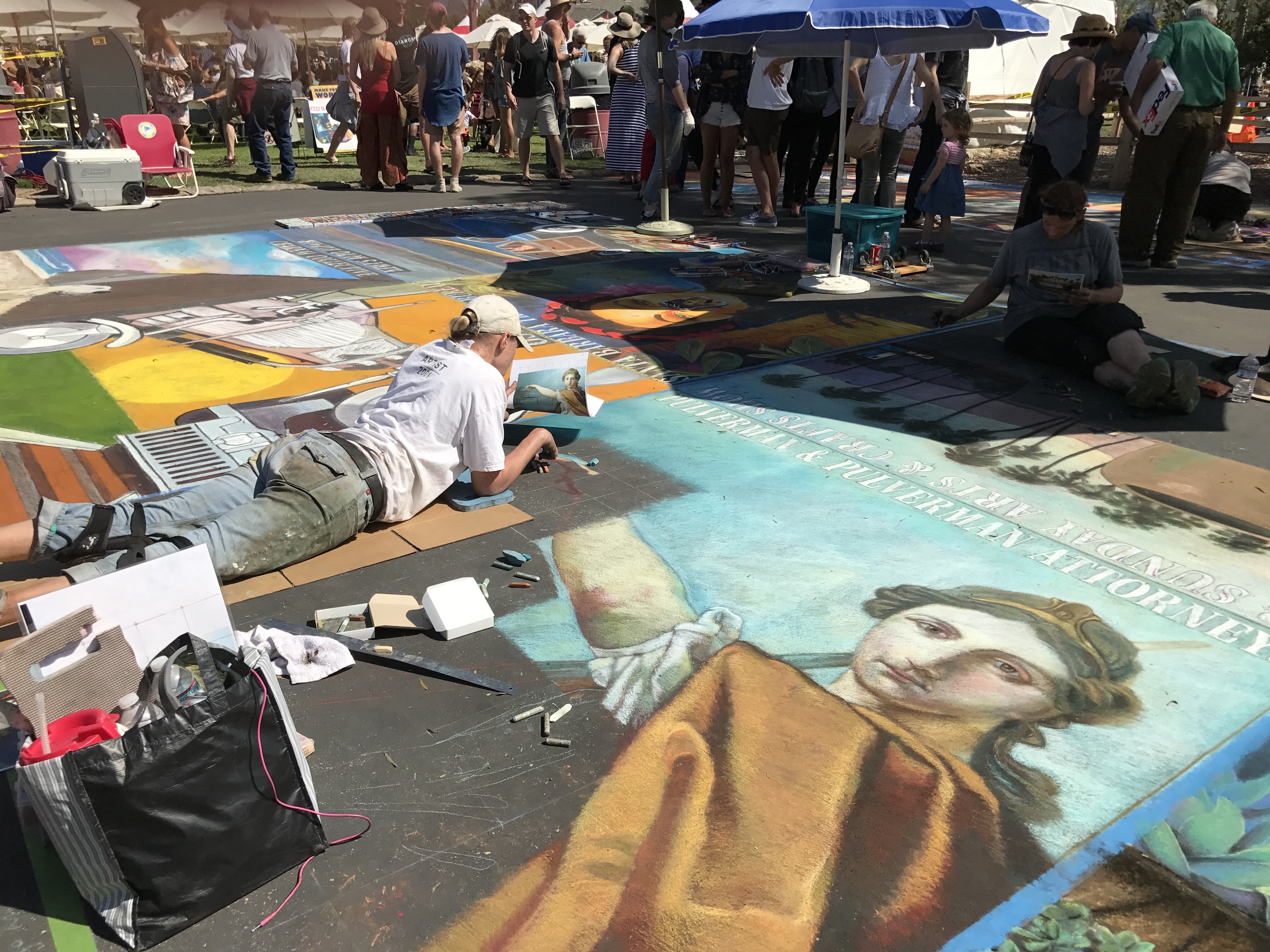 Called I Madonnari, the festival was the first of its kind in North America. This was the 31st anniversary. The squares range in size from 4-by-6 feet to 12-by-12 feet. Each one bears the name of the sponsor — a business, organization, family, or individual.