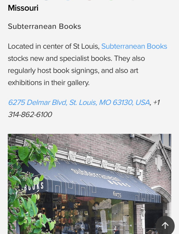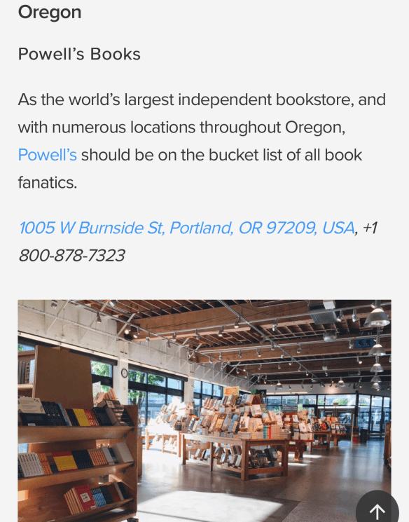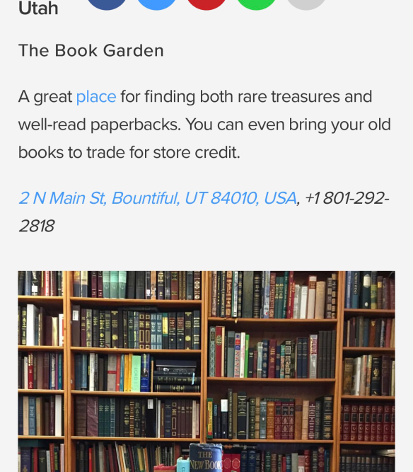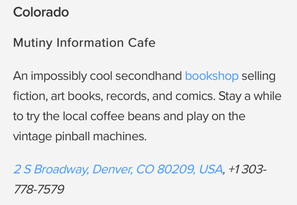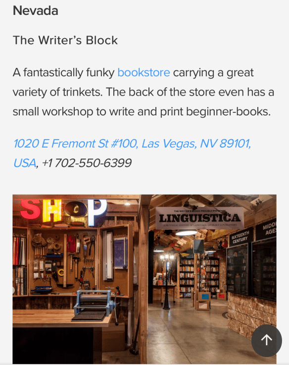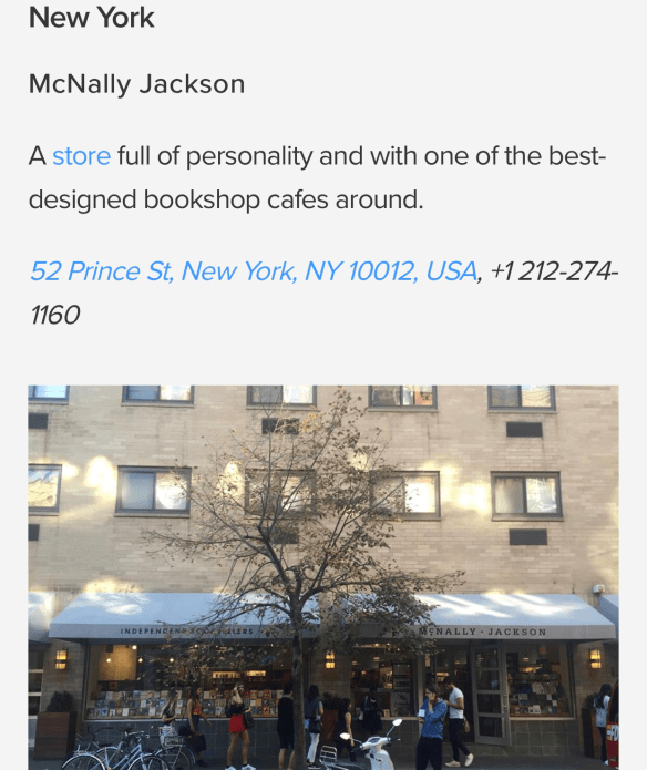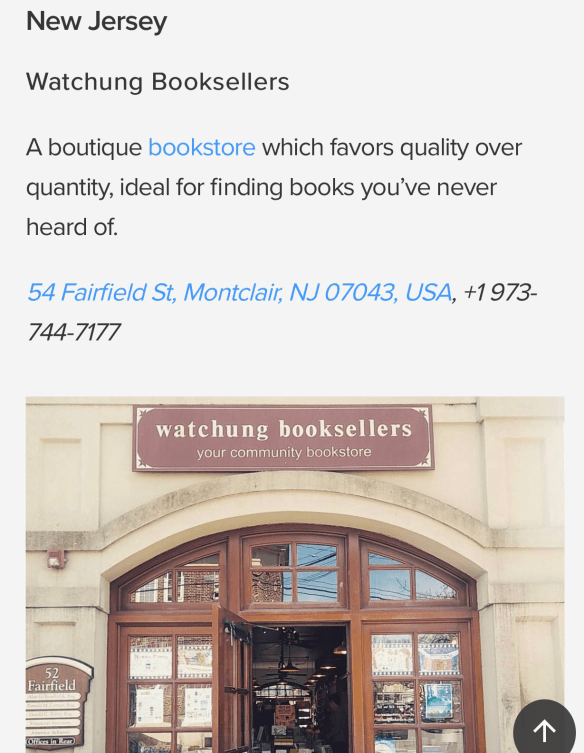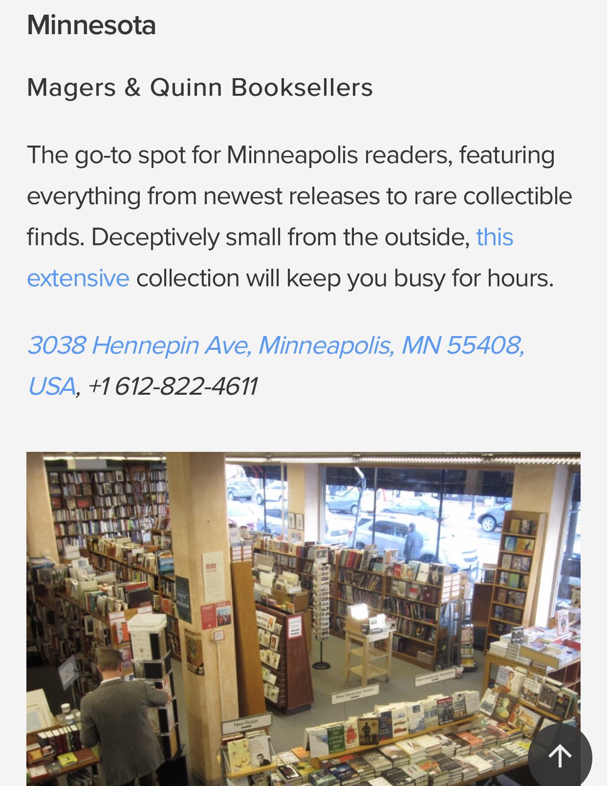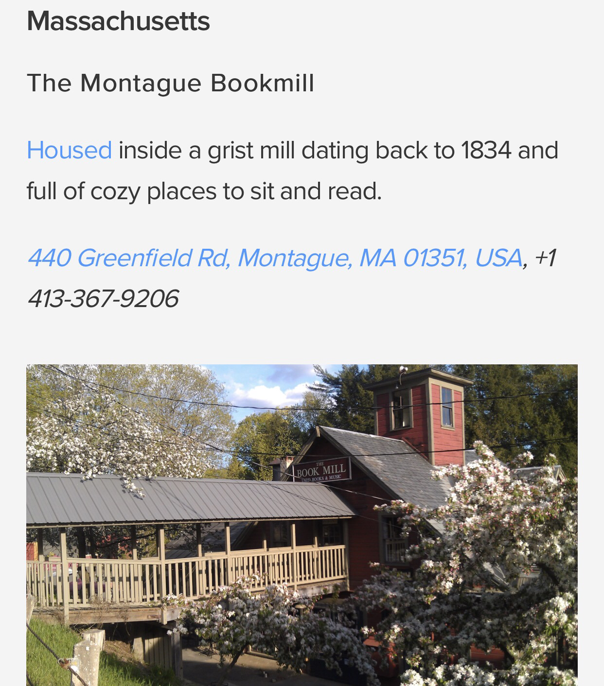 This is a collector’s item. Save it. We all know that bookstores are a thing of the past. The Culture Trip, an app, just did a wrap up of 50 unique independent bookstores that are still around the country. My lovely friend, Anne Bloom, just posted the bookstores and locations on Facebook.