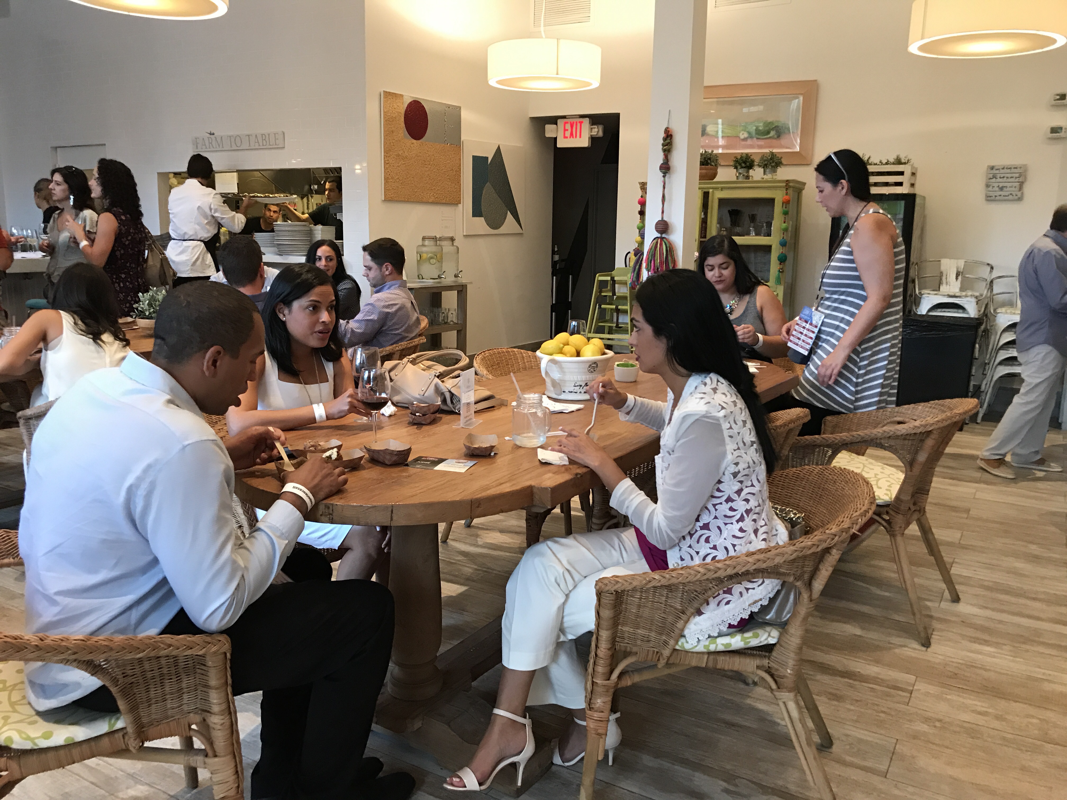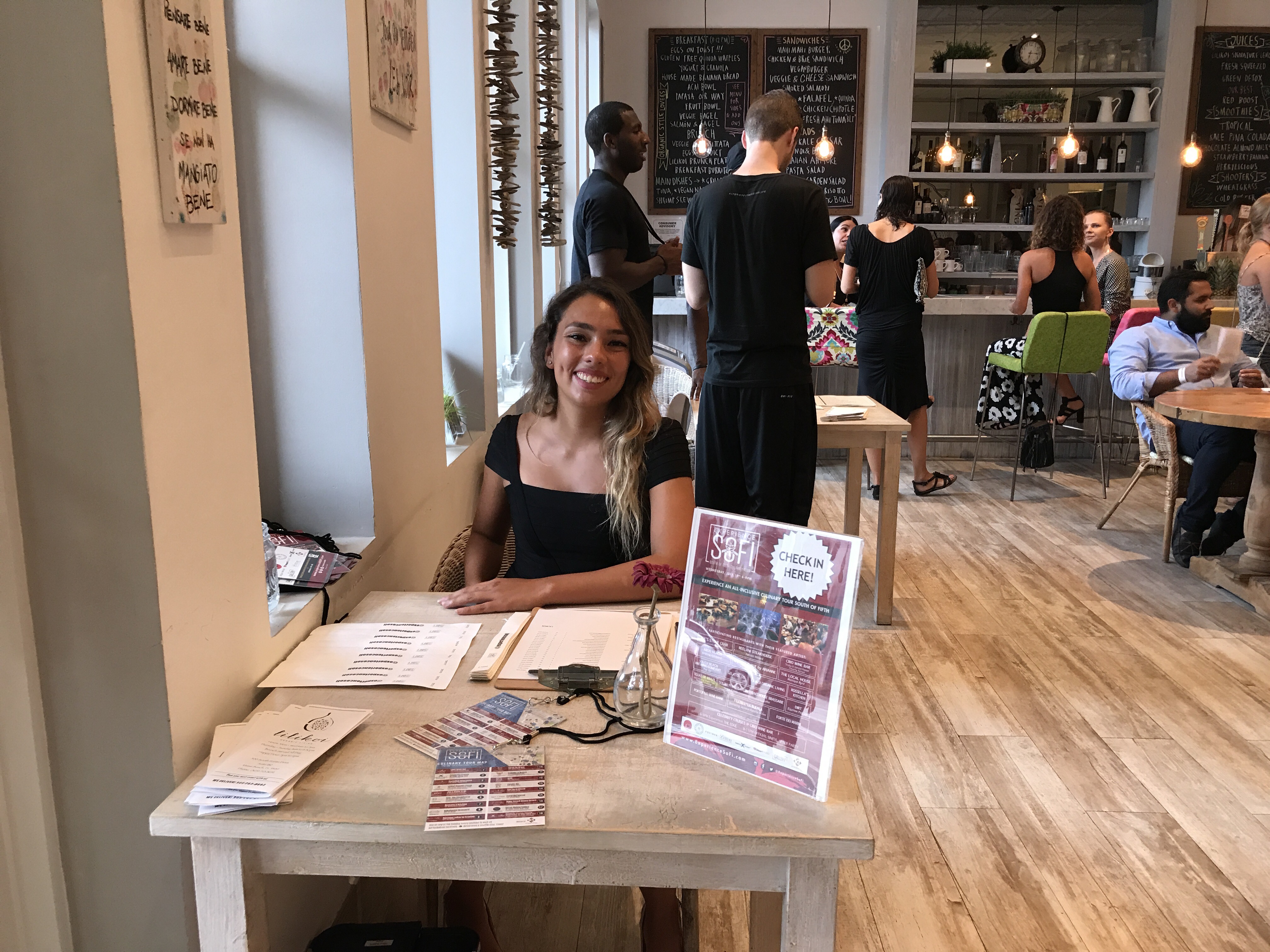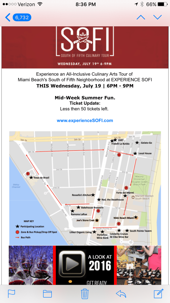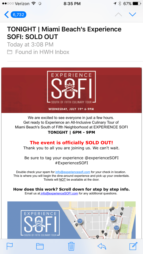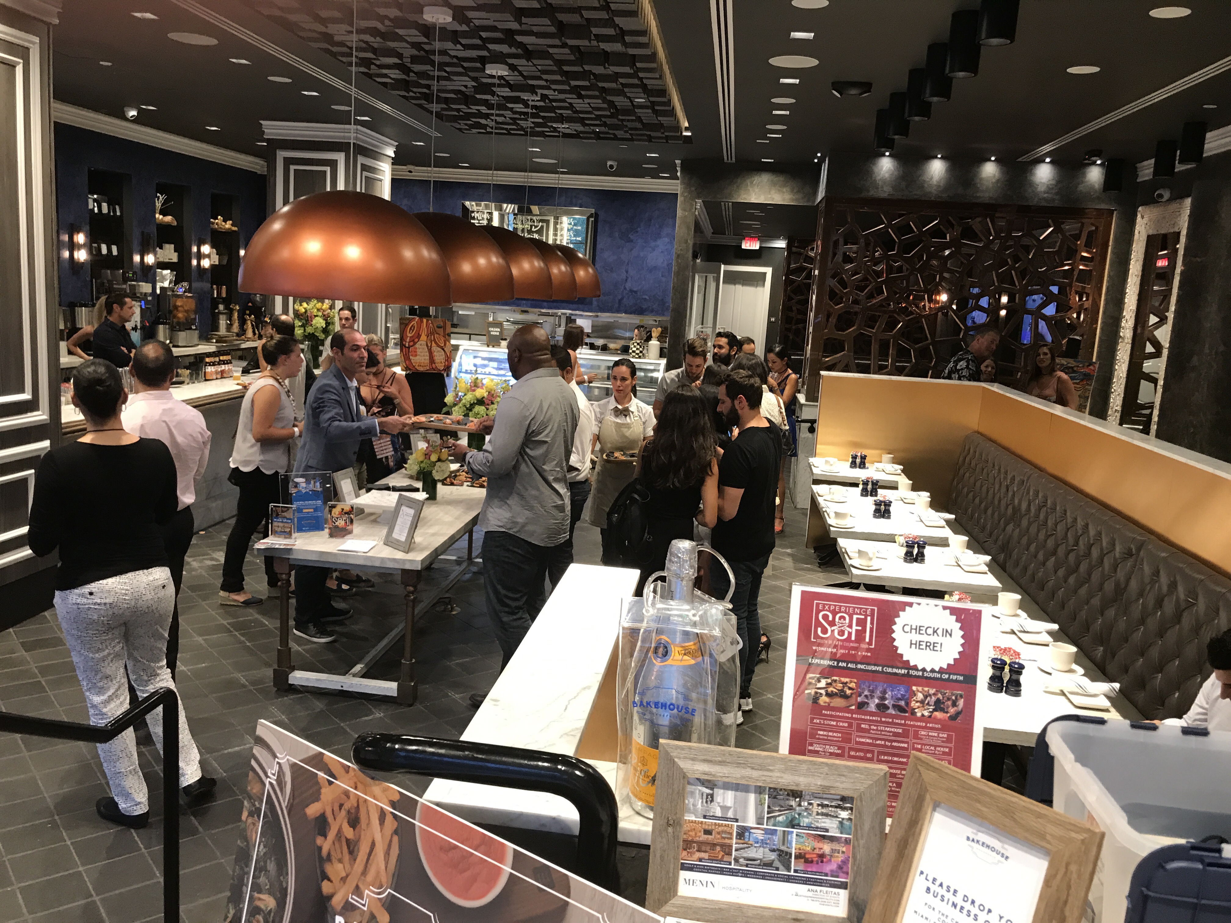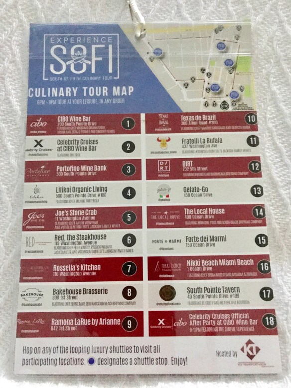 It’s was so nice to see smiling faces everywhere we went. Eliot and I were among a few hundred folks who participated in the South of Fifth restaurant tour on Miami Beach tonight. South of Fifth is the tony area that is actually South of Fifth Street. We have the ocean on the East, Biscayne Bay on the west, Government Cut on the South and the balance of Miami Beach to the North.