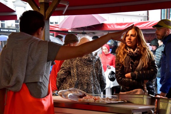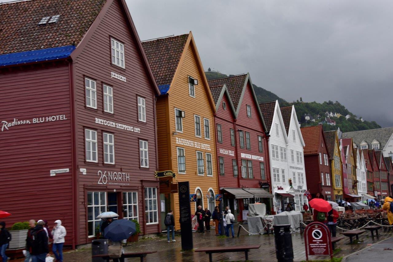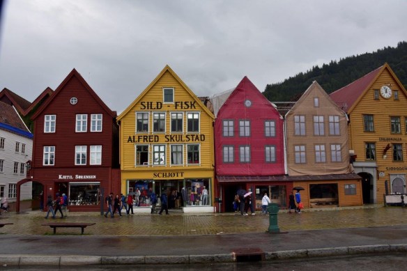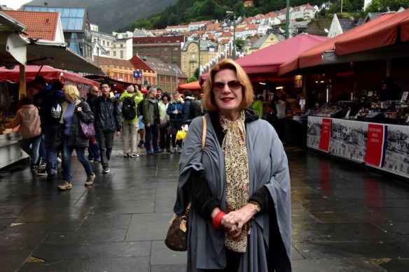 Today we are in Bergen, (Bryggen) a city on Norway’s southwestern coast. We are surrounded by mountains, fjords and colorful wooden houses on an old wharf. The panoramic views and hiking trails are breathtaking. Periodic rain doesn’t stop the action in the Sunday fish market.