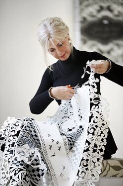 Today she has assignments and exhibitions in the Nordic countries, Europe, the United States, and Asia. Adrian Sassoon of London is her art dealer. Karen also collaborated with Chinese paper artist Xiaoguang Qiao. Their work has been shown in several countries. Bit recently designed other products, such as blankets, tablecloths and tableware based on her paper clip patterns. It was a natural.