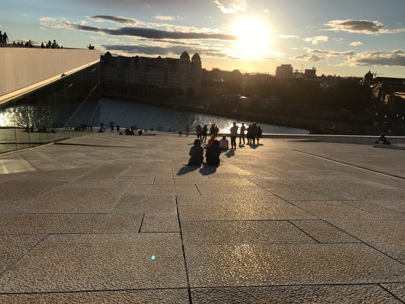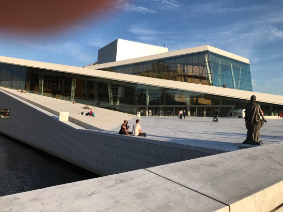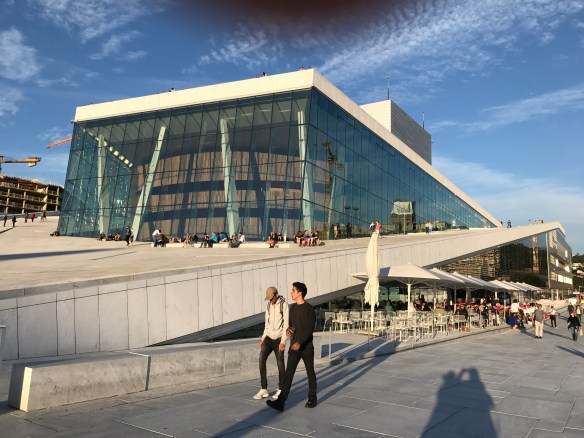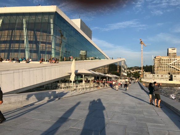 This is the first time that I can remember being asked to walk on the roof of any building. Yet, the Oslo Opera and Ballet House (Norwegian: Operahuset) has been designed in such a way that people from all over the world walk the roof from many different paths.