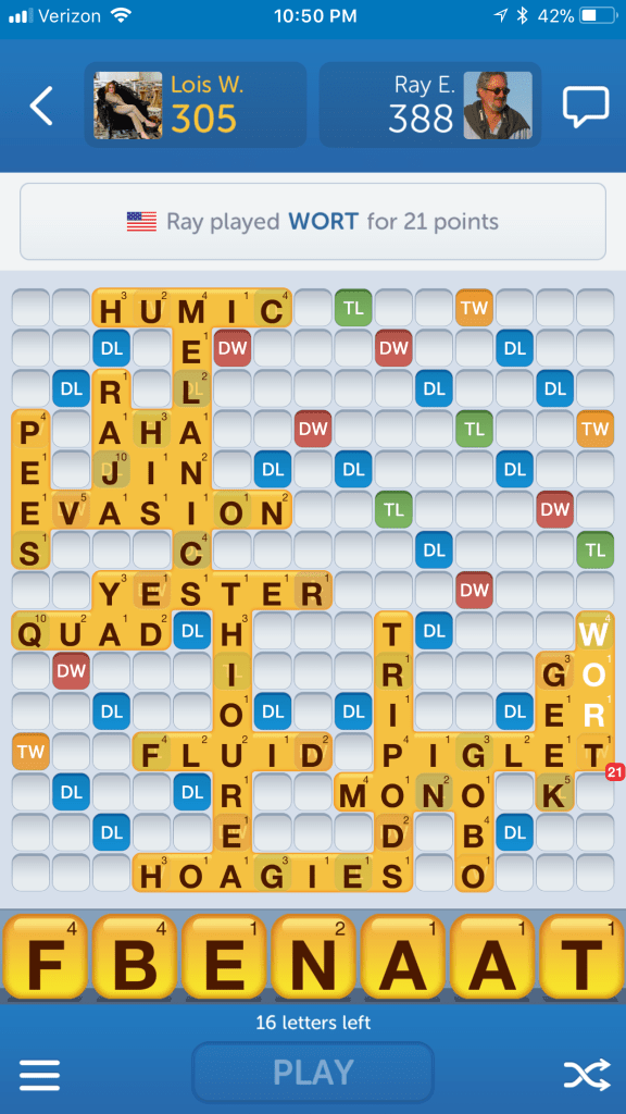 Words With Friends is a wonderful way to work your brain and keep in touch with people from your personal and business lives. I am now playing a game with people I met once at a party, childhood friends, neighbors, cousins, and business associates.