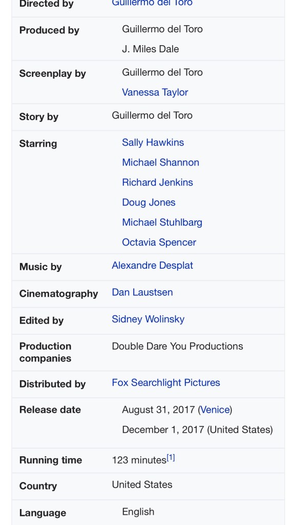 Eliot and I had the good fortune of watching the “The Shape Of Water” at the Coral Gables Art Cinema Wednesday night. We are members and we love the vibe there. The founder and the artistic director of the theater usually introduce the movies with creative background stories.