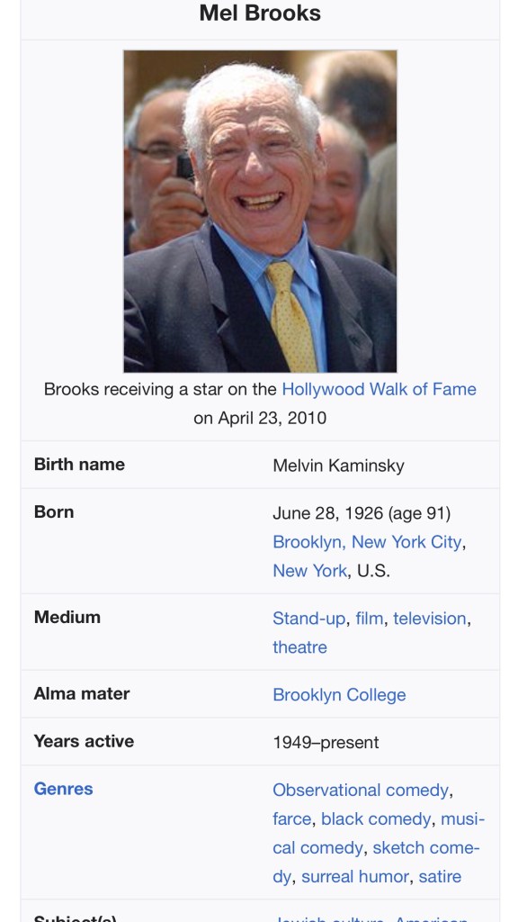 I’m not sure how I found out that 91 year old Mel Brooks was going to be performing at Temple Emanuel in New York City tonight. I’m glad I did, because it was like watching a lifelong friend reminisce about years that you spent together.