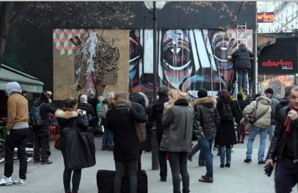 Bob plans to paste many of his large multi-media, avant-guard photos on walls everywhere. Many companies with blank walls welcome art work because it draws crowds. Street art work is either painted, drawn, or pasted on walls. Some art work disappears immediately, others stay for weeks and months.