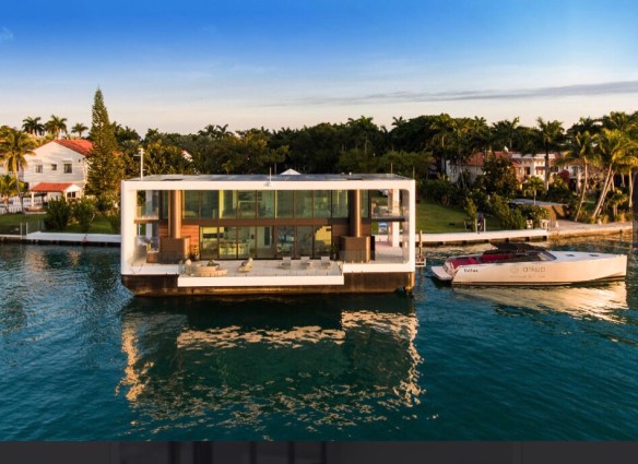Every time Eliot and I were on the MacArthur Causeway in Miami Beach recently, we saw a floating mansion next to Star Island. Several boat shows were in town so we felt this new type of houseboat had something to do with that.