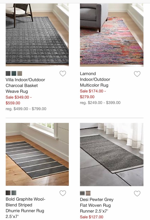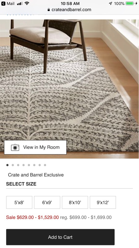 I must have superimposed a dozen rugs to see what would look best. This was such a great way to shop. I’m sure other retailers offer similar online shopping techniques. If you know of any, let me know so I can share with others.