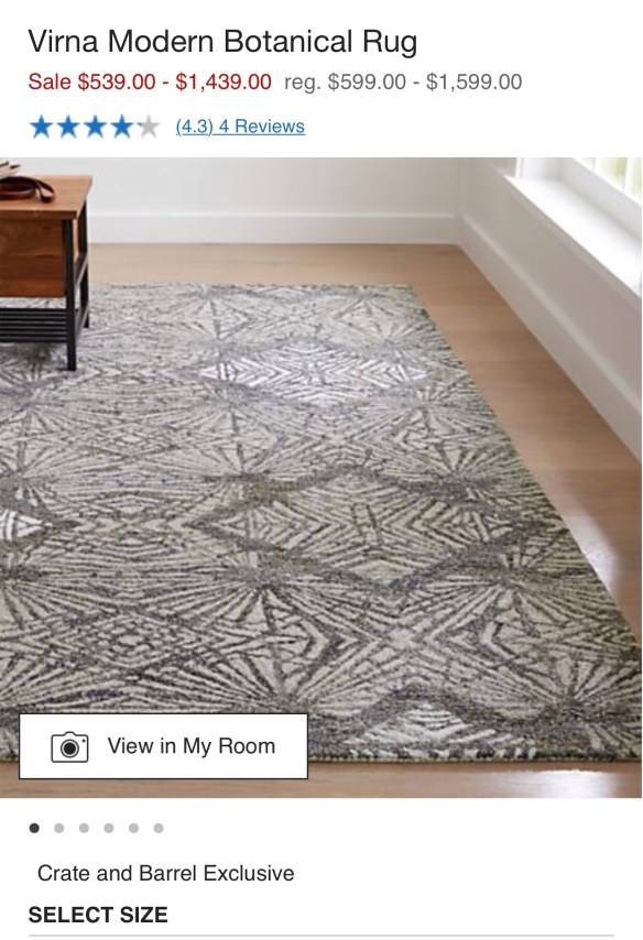 I’m not sure how many of you know this, but Crate & Barrel has a new digital feature that allows you to see how furniture and rugs actually look like in your home.