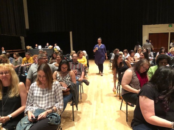 I took this photo from my Lyft after a very early morning meeting. I see a face in each color.