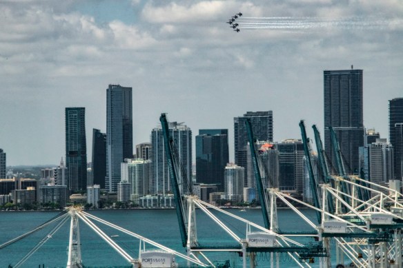 The Navy Blue Angels flew over South Florida this afternoon in a salute to healthcare workers and first responders.
