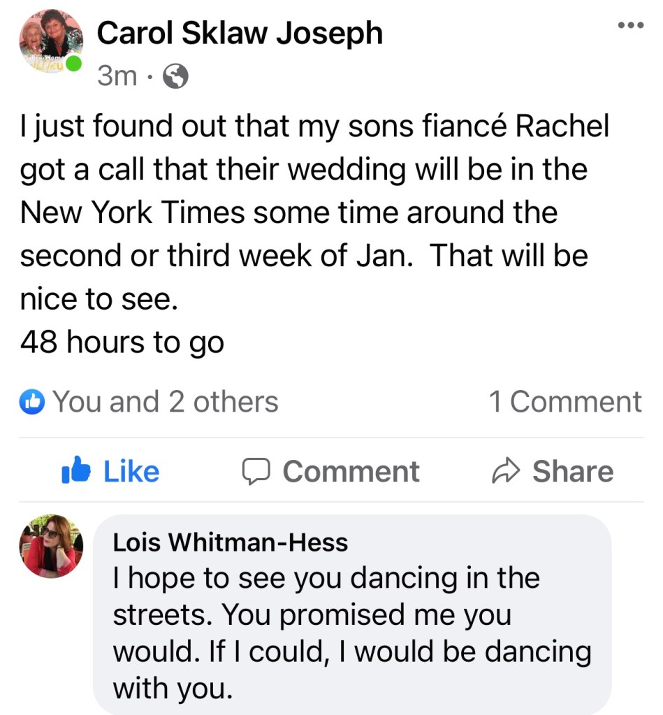 This Chanukah was very emotional. Wishing everyone a healthy and happy year ahead. Love, Lois and Eliot