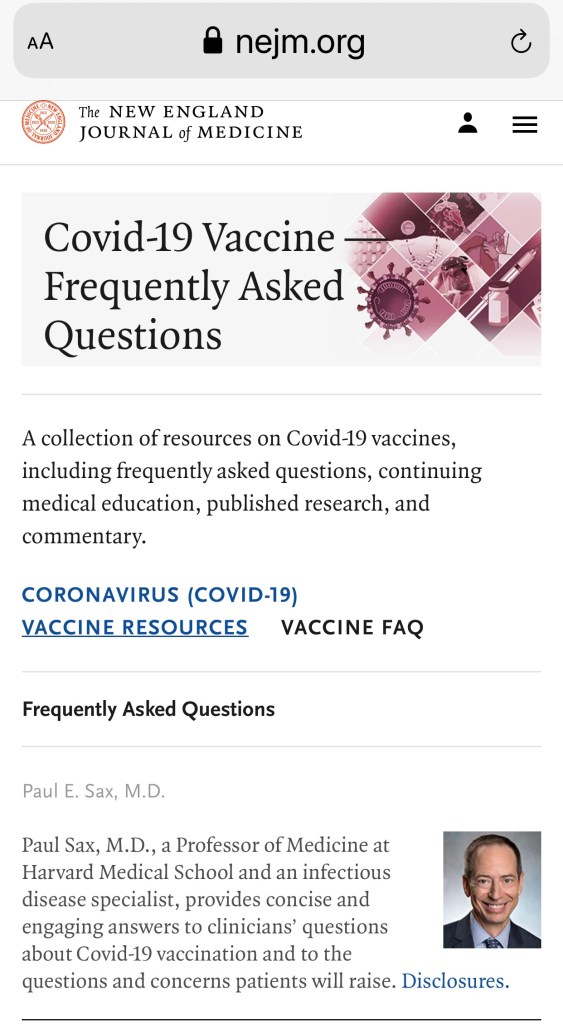 NEJM — Covid-19 Vaccine Frequently Asked Questions (FAQ)
