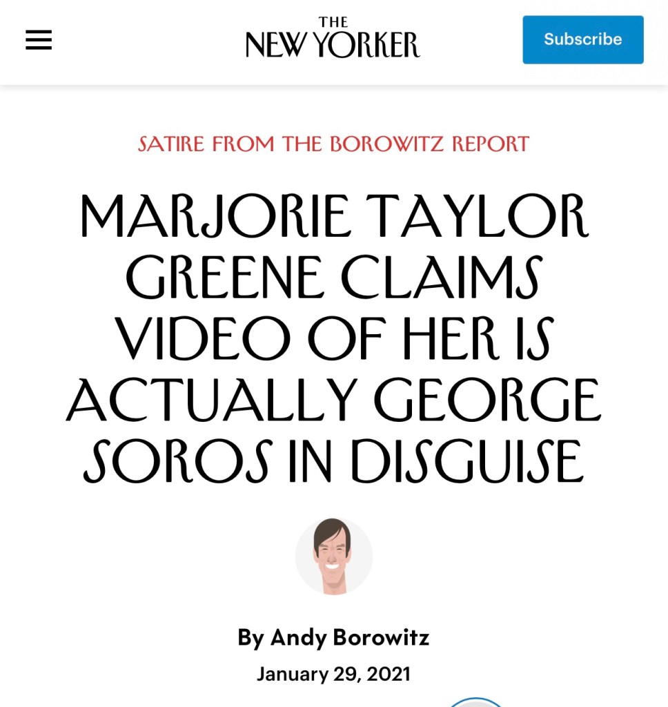 Marjorie Taylor Greene Claims Video of Her Is Actually George Soros in Disguise | The New Yorker