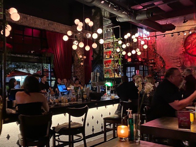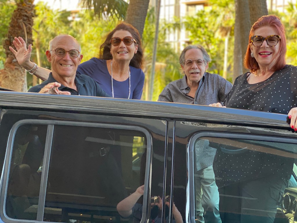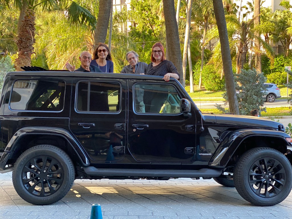 We just felt like acting silly tonight. We pushed a button on our retractable roof, it folded all the way back, and we got to wave to the world. Then we drove to the Gramercy Restaurant on the Miracle Mile in Coral Gables. It was gorgeous, delicious and so much fun. We forgot how old we were for a few hours.