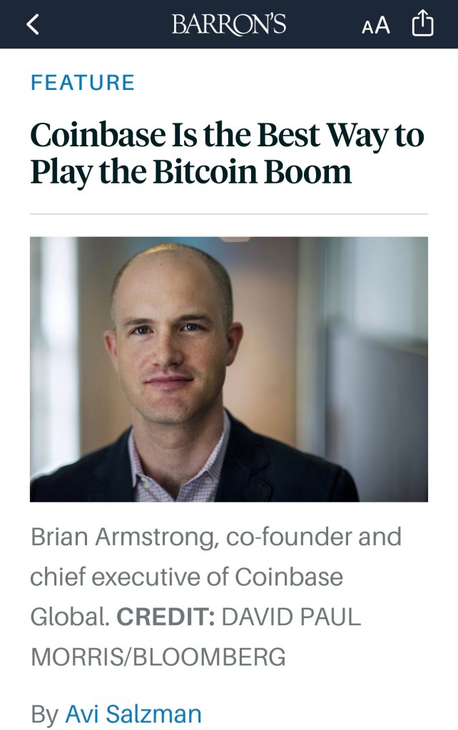 “I think the fact that Coinbase was a U.S.-based venture-backed start-up, put it on a different trajectory, which was one of being a well-lit venue, that’s well-regulated, and in constant dialogue with regulators and lawmakers,” Tom Loverro, a Coinbase investor, tells Barron’s. “This was set up to be a corporation.” Loverro is a partner at venture-capital firm IVP, which led a funding round for Coinbase in 2017.
