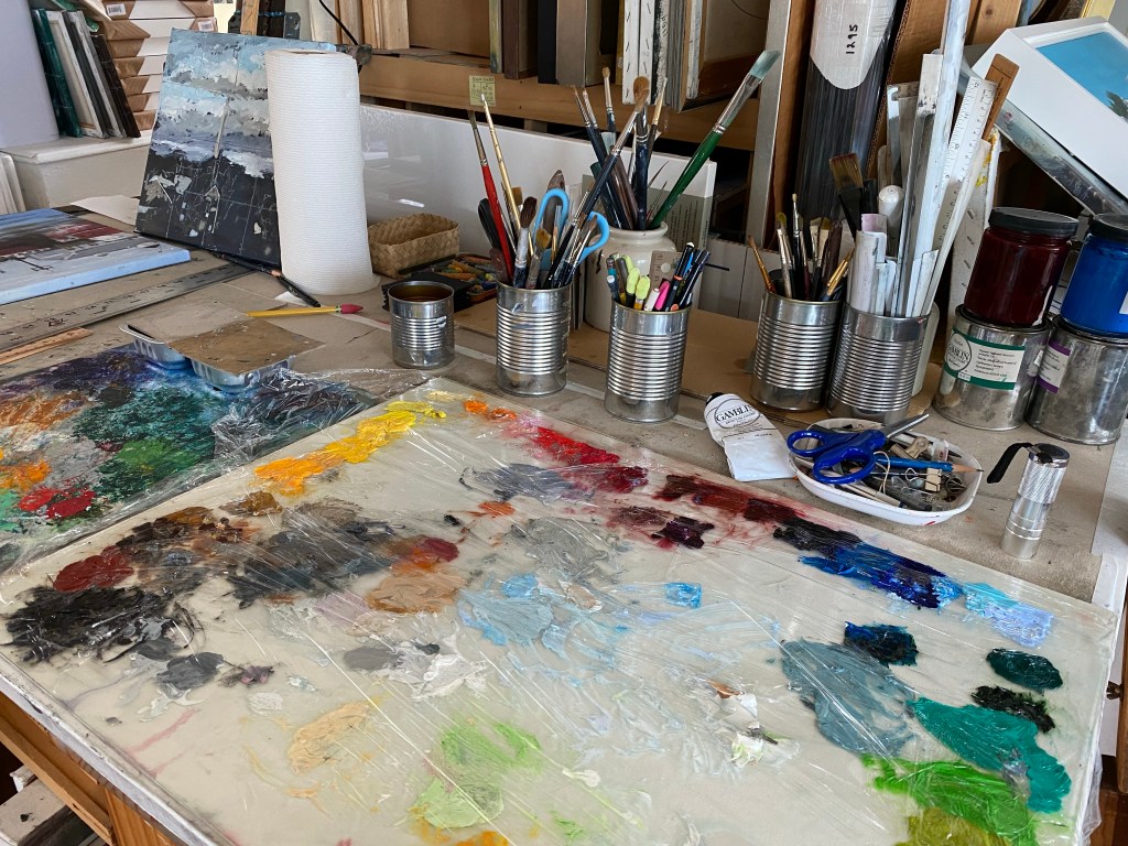Every time I visit an artist in his/her/they studio, my mind starts to immediately wander about what really takes place during the process of creating a piece of art. In my opinion, a studio is much different than an office because everything that gets created is very visible within its walls. A studio tells a story.