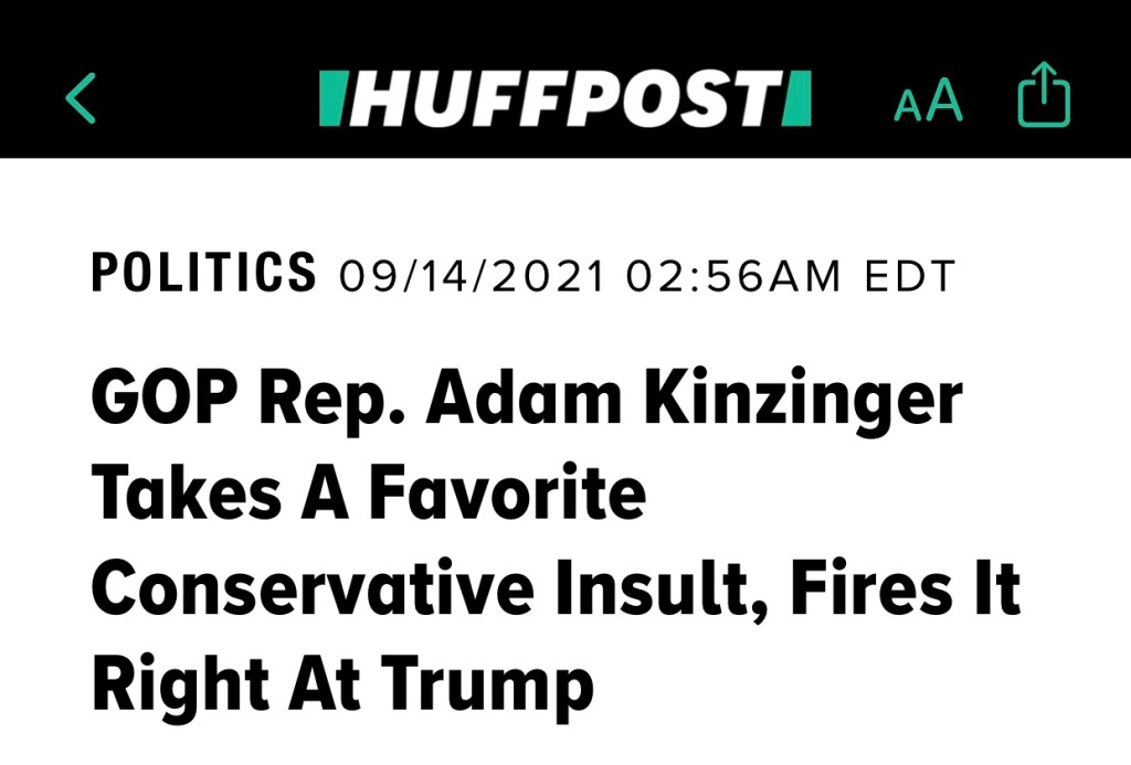 Rep. Adam Kinzinger (R-Ill.) used an insult frequently hurled by the right at liberals to take his latest swipe at Donald Trump.