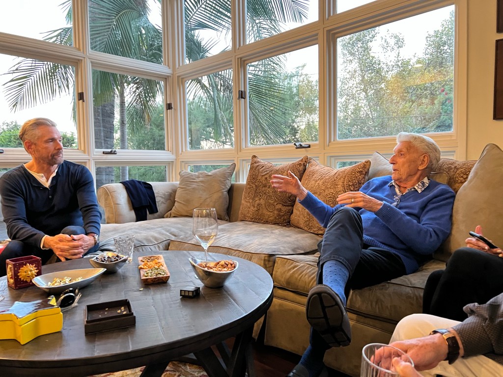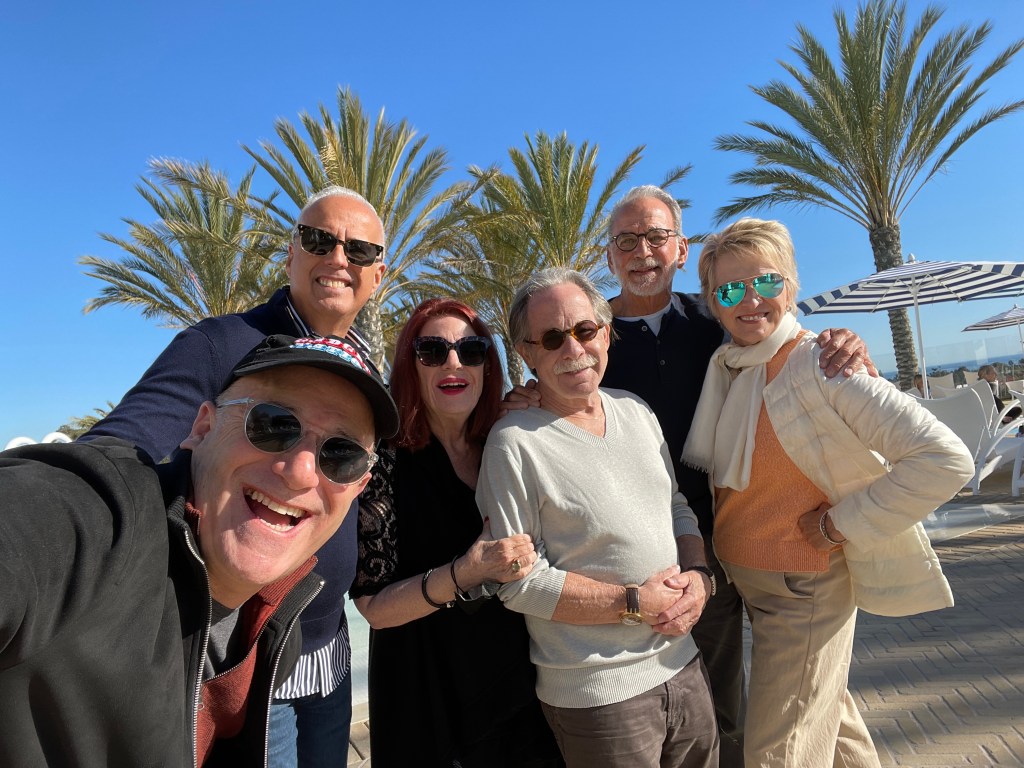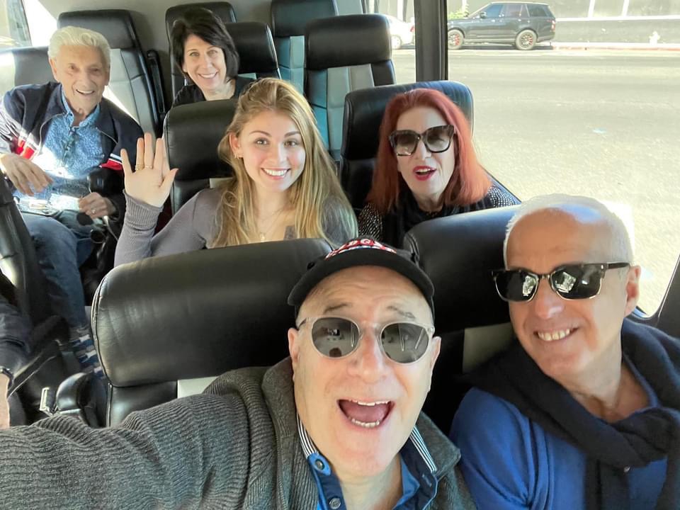 We spent the day in Montecito and Santa Barbara visiting our dear and close friends Andrea and Ron Hein. Ron drove us around for hours showing us all the beautiful views, landmarks and and celebrity homes. Lunch at the Montecito Country Club. Their home is totally paradise. What a fabulous day.Celebrating our wedding anniversary at Spacca with my celebrity cousins Larry Young (right) and Darren Thomas (next to me) who happened to be among the top real estate agents in LA. Robert Armada and Steve Greenberg complete this family circle. Happy Thanksgiving to all.The doll of all dolls, cousin Jeff Young, the world renowned sleep doctor, took us on the sensational tour of Malibu, Santa Monica and Venice. We felt like surfer folks visiting every spot on the Pacific Coast Highway.Wedding anniversary Dinner at the Ivy in Beverly Hills with my cousins Hanna, (friend Jackson) Beth, and Jeff. Steve and Robert were icing on the cake. We rented a Mercedes Bus for the first day out to see all of the hot spots in Los Angeles. The stunning gentleman in the back seat is Beth’s dad Sandor Rosenfield. He and wife Frayne are close friends and remarkable people, They made sure we were well fed with See’s Candies. Chocolate everywhere.