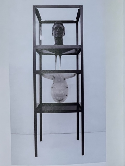 Everyone always asks me what was the most exciting and important exhibit at the Miami Art Fair. Go see what Tami Katz-Freiman (in yellow) curated at the LnS Gallery. It’s brilliant. Artist Tony Vazquez-Figueroa (in the middle) created the Amor Fati/ Eternal Recurrence. It’s a life-size head cast in bitumen, a portrait of the artist. It’s placed within a transparent plexiglass container resembling an aquarium. the bottom of the aquarium contains a hole through which the bitumen drains into another container, holding a negative mold of the same self portrait. The work is based on the Pitch Experiment, which is considered to be the longest active scientific lab experiment in history. It was initiated in 1927 in Australia by Professor Thomas Parnell in an attempt to measure the viscosity of a piece of tar over many years. The original experiment was performed with pitch, a general name for a number of viscous liquids that appear solid, the most common of which is bitumen. Tar of this type “flows” at room temperature at the rate of one drop every nine years. The experiment is still active. There appears to be enough tar in the funnel in order for it to continue for at least another century. Husband Mooli Freiman joins Tami in this celebration. Photos by Eliot Hess.