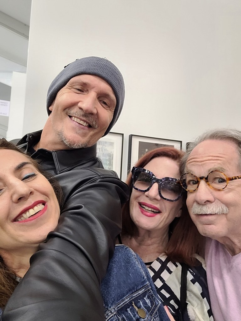 Nicole Martinez, communications director of Fountainhead Arts on right with artist friend, flanking Eliot. Nicole is hitting PR home runs.