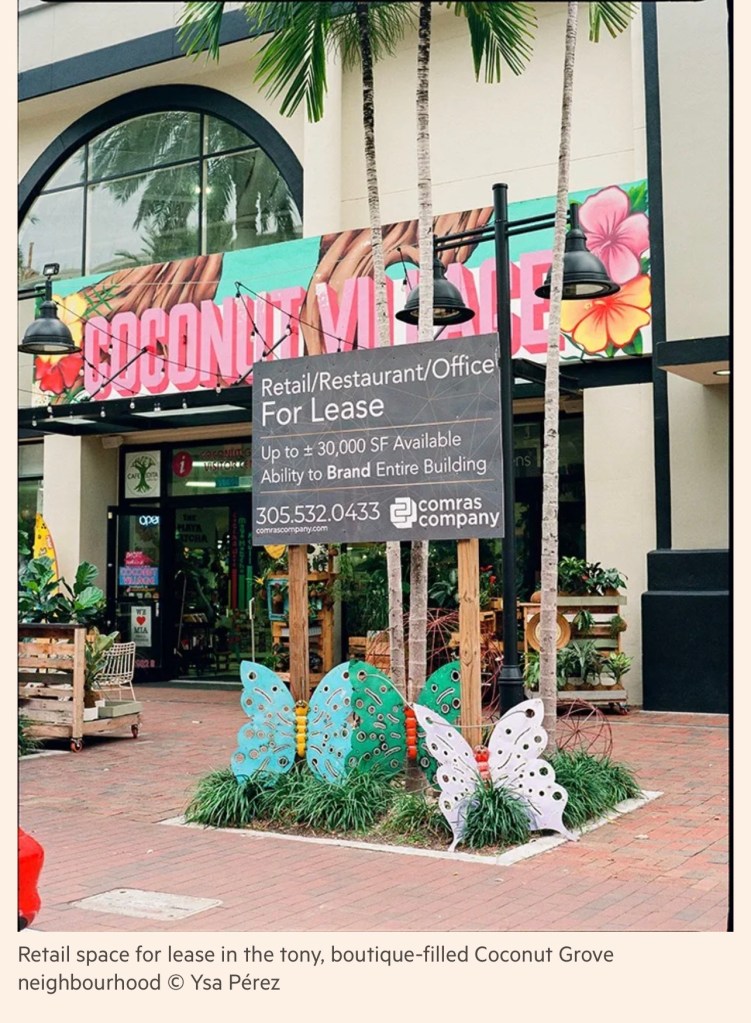 Retail space for lease in the tony, boutique-filled Coconut Grove neighbourhood © Ysa Pérez