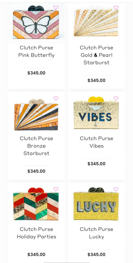 Because I know you, and you know me, I can get you major discounts on client Elizabeth Sutton’s “runway showstoppers” clutches. I own four. I get stopped everywhere by woman asking me where they can buy one. They are so much fun. Elizabeth is now running her business out of her new Sutton place townhouse on East 57th Street, NYC. Sutton on Sutton. Isn’t that amazing? Email me and I will give you your special price. (Around 30 per cent off). Loisw@hwhpr.com. You are going to be hearing a lot more about Elizabeth. Go see all of her fashions, her art, her interior designs at Www.elizabethsutton.com.