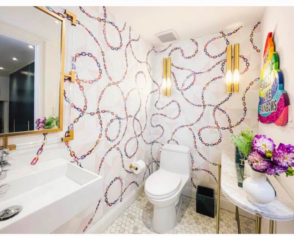 We designed every room using luxury decor from my wallpaper collection with Sur La Mur, to custom fixtures from NSA lighting, as well as magnificent furniture from Modshop, gorgeous decorative accents from Mehlrose NY, and award-winning tile collections with Tilebar. We also created custom statement window shades for every room with NV Window Treatments.