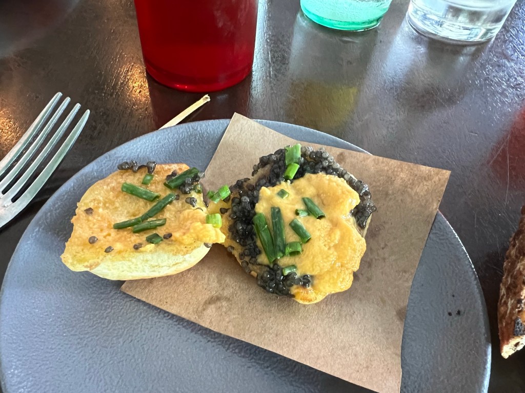 Our usual Saturday afternoon outing to the Miami Design District. I had a uni caviar sandwich ($30), the size of a White Castle 70 cent burger and a steak tartar ($29). Eliot had a short rib panini that was so big he took half home. Pricey but super delicious.
