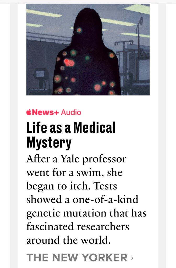 And yet it’s impossible to unknow what the tests have revealed: that I have one strange gene, with its own agenda. Ombrello says that he tries to avoid the “retrospectoscope,” in which patients and doctors reinterpret past symptoms through the lens of new knowledge. Historians often refer to this error as presentism, the tendency to read contemporary attitudes back onto history. For better or worse, I haven’t been able to avoid this way of thinking. If the mutation was always there, throwing my immune system off-kilter, what else might it explain: my overhyped and anxious nervous system, the ferocious muscle tension I fought for years, my lifelong unwillingness to work at night? Then again, how did I not know about it for so long? Dr. Shin once suggested that perhaps I’ve always been sicker than I recognized, that my baseline for pain and fatigue and discomfort might be radically different from the norm. “You might be a very tough person,” she offered, a narrative that I’d be happy to embrace, were it not for the impossibility of ever knowing for sure one way or another.